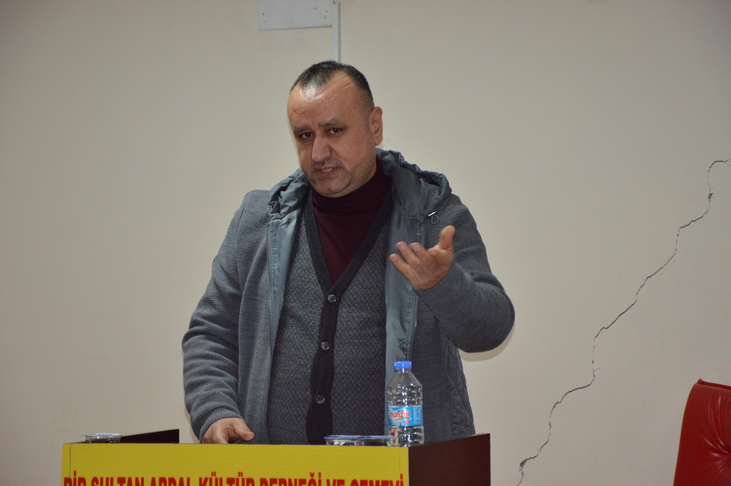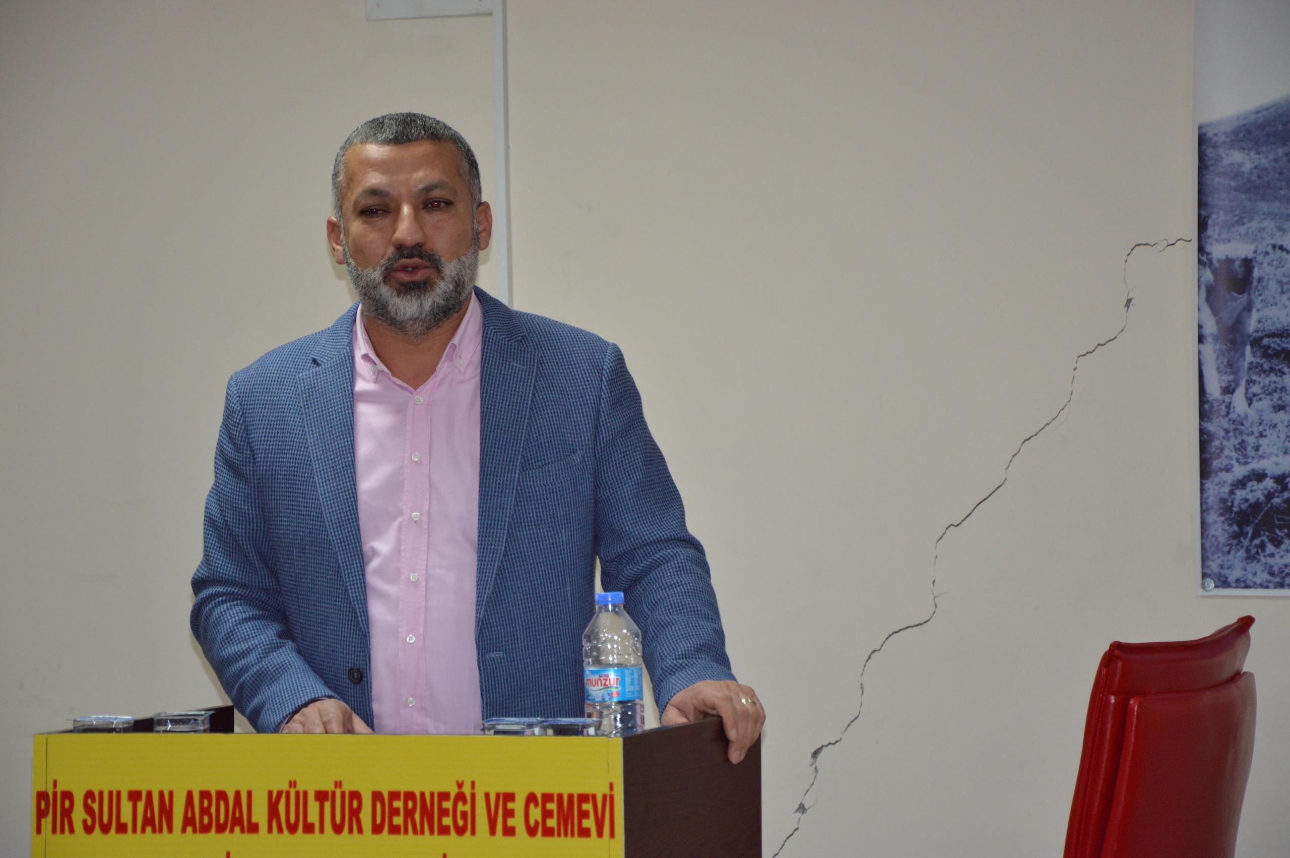 Cafer Koluman konuşmasını Pir Sultan Abdal’ın, “Divana Kalsın” şiiriyle tamamladı.