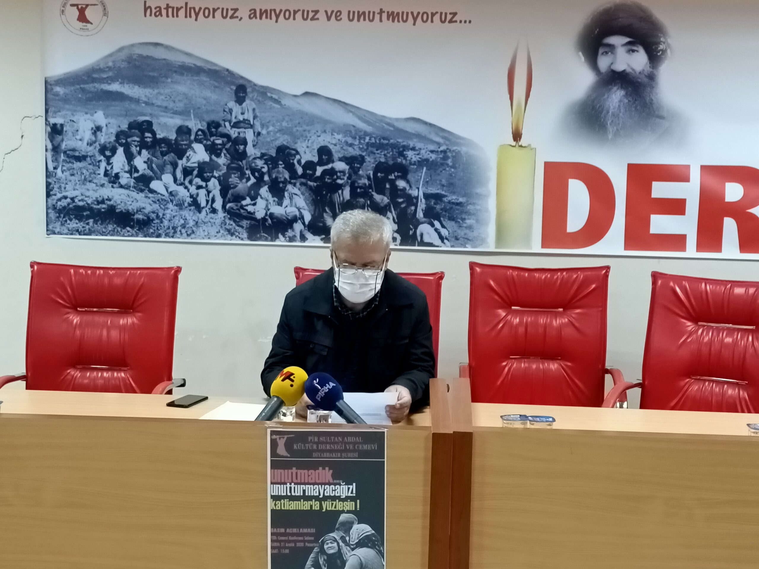 PİRHA- Maraş Katliamı’nın 42. yılı dolayısıyla Pir Sultan Abdal Kültür Derneği PSAKD Diyarbakır Şubesi’nde Maraş Katliamı’nda yaşamını yitiren canlar anıldı. Anmada konuşan PSAKD Diyarbakır Şubesi Başkanı Aydın Atlı, “Maraş Katliamı’nın hesabı daha görülmedi” dedi.