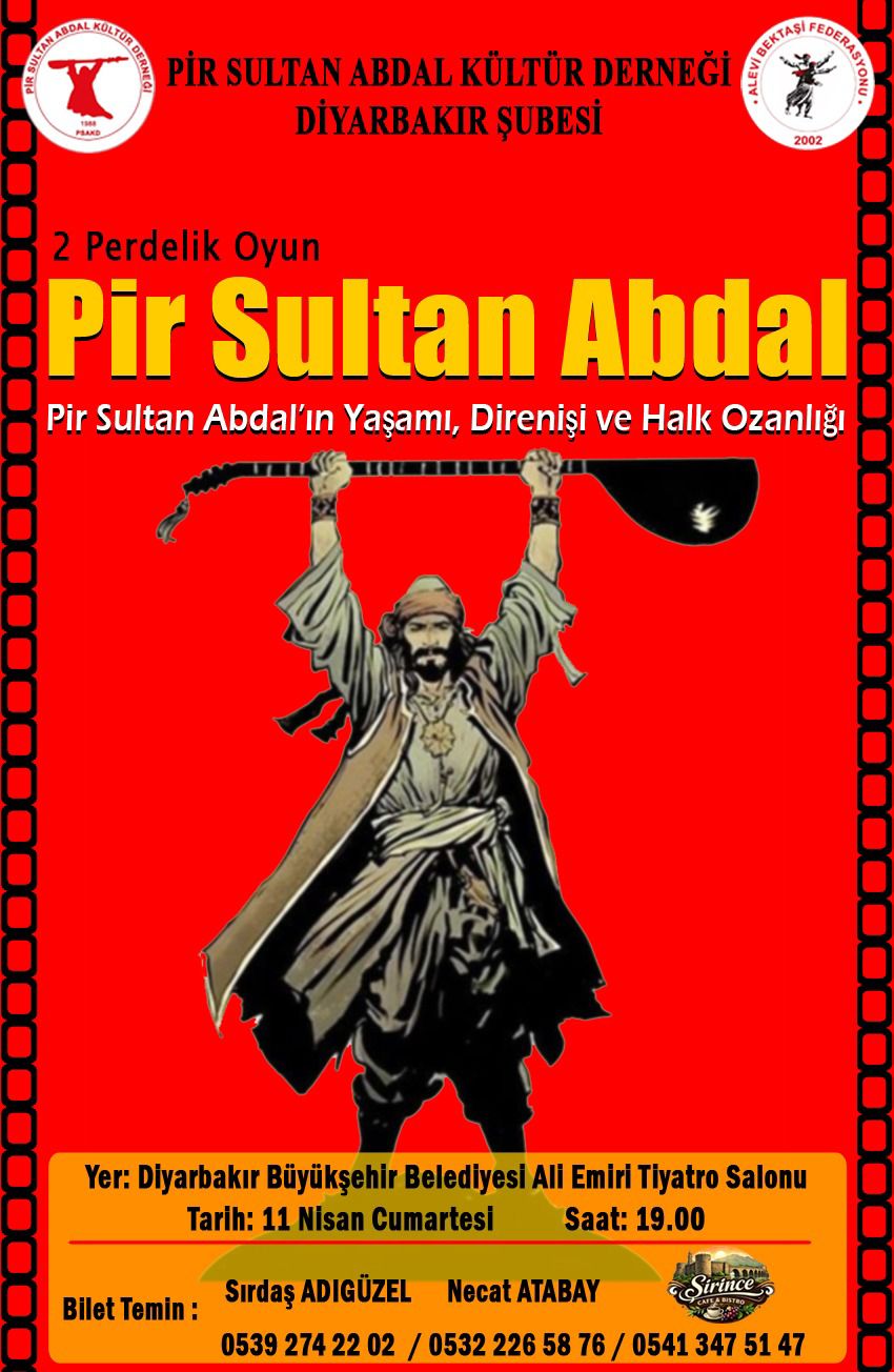 Pir Sultan Abdal Kültür Derneği (PSAKD) Diyarbakır Şubesi ve Alevi Bektaşi Federasyonu(ABF)’nun ortaklaşa organize ettiği ‘Pir Sultan Abdal’ tiyatro oyunu Diyarbakır’da sanatseverlerle buluştu.