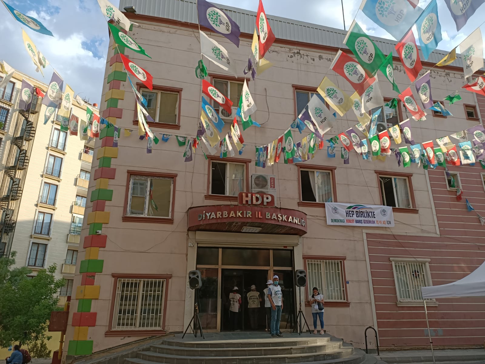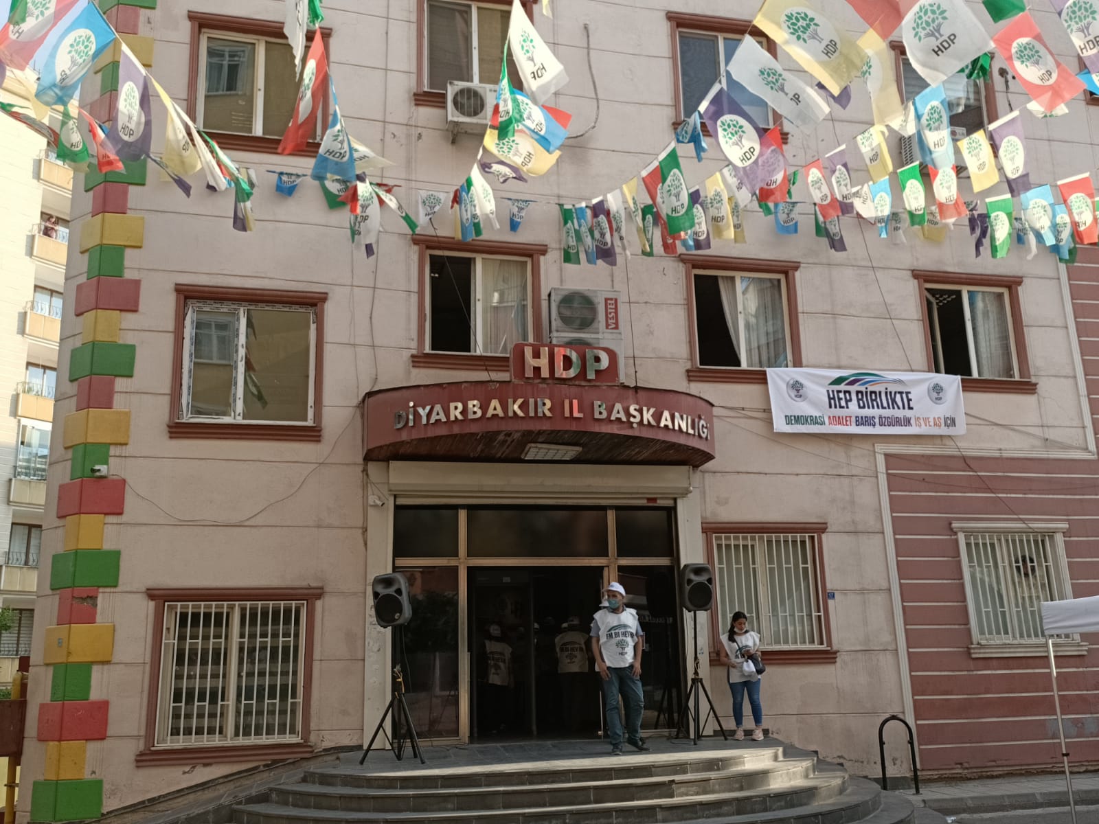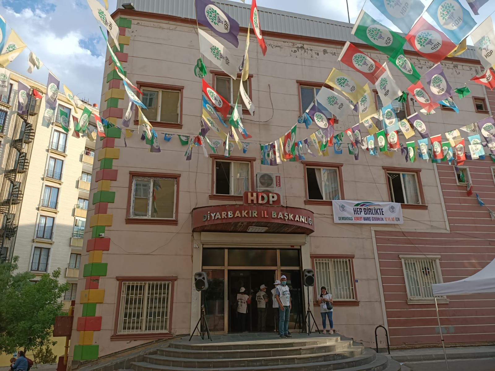 PİRHA- HDP’nin 15 Haziran’da Edirne ve Hakkari’den başlattığı “Darbeye karşı demokrasi yürüyüşü” üçüncü gününde. HDK Eş Sözcüsü Sedat Şenoğlu, DTK Eşbaşkanı Berdan Öztürk, bileşen partilerinin eşbaşkan ve sözcüleri ve milletvekillerinin Diyarbakır İl binasına gelmesi bekleniyor. Ancak polis bina çevresini ablukaya aldı.