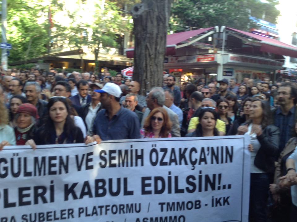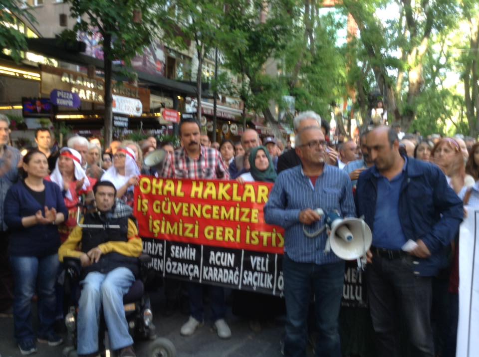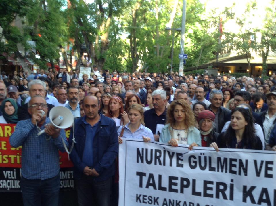 Ankara Tabip Odası, Ankara Serbest Muhasebeci Mali Müşavirler Odası, Türkiye Mimar Mühendisler Odaları Birliği, Ankara İl Koordinasyon Kurulu, KESK Ankara Şubeler Platformu, açlık grevinde olan akademisyen Nuriye Gülmen ve öğretmen Semih Özakça için Kızılay Mithat Paşa Köprüsü altında toplanarak Yüksel Caddesi İnsan Hakları Anıtı önünde basın açıklaması yaptılar.