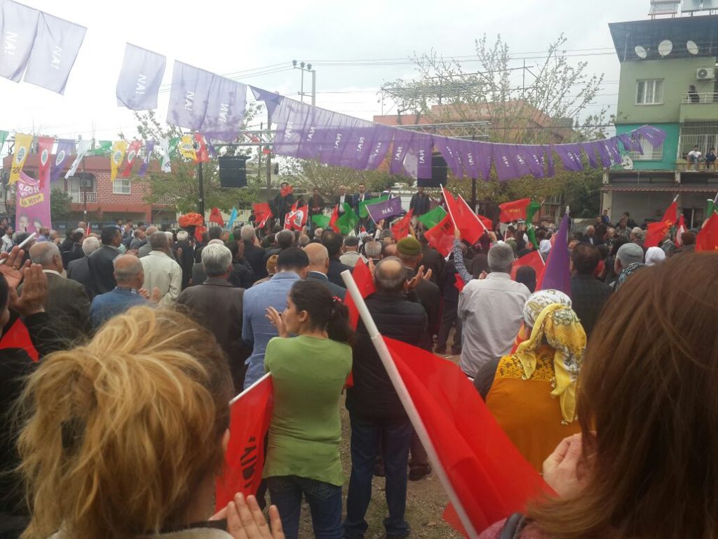 PİRHA – HDP’nin Türkiye’nin dört bir tarafında seçim çalışmaları tüm hızıyla devam ediyor. Hatay’da bugün yapılan mitinge yüzlerce insan hayır bayraklarıyla katıldı.