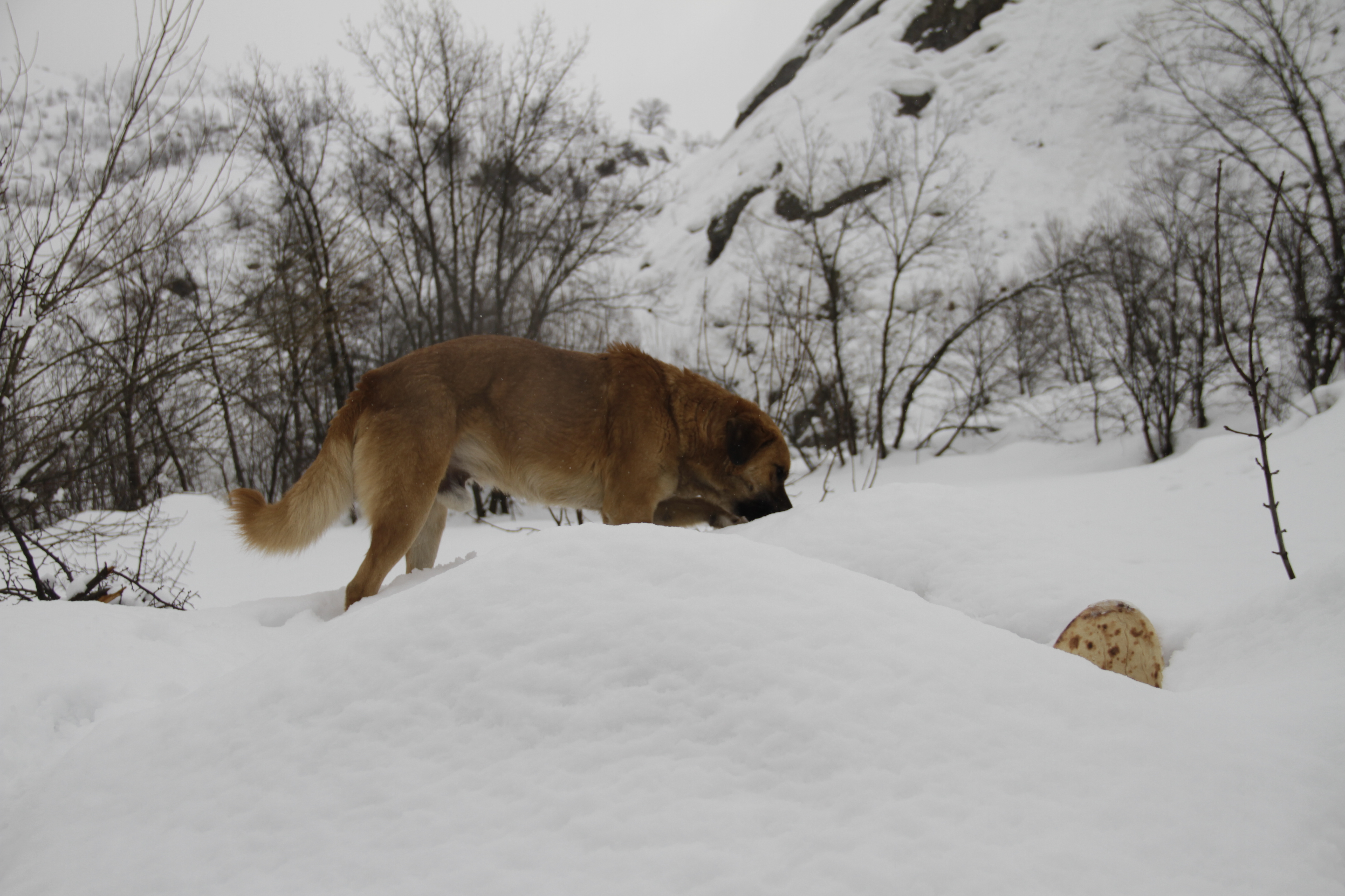 PİRHA – Dersim’de yaşayan doğaseverler, Munzur Vadisi Milli Parkı’ndaki yaban hayvanları ve köpekler için vadiye yiyecek getiriyorlar.