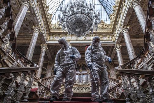 PİRHA – Cumhurbaşkanı Erdoğan tarafından çalışma ofisi olarak da kullanılan Dolmabahçe Sarayında yeni Korona Virüsü alarmı verildi. Cumhurbaşkanı Erdoğan’ın İstanbul seyahatlerinde sıklıkla kullandığı sarayın içi ve avlusu özel ekipler tarafından ilaçlandı.
