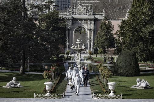 Cumhurbaşkanlığı ile Kültür ve Turizm Bakanlığı’na ait olan Dolmabahçe Sarayı, dünyanın her yerinden gelen onbinlerce turistin ilk uğrak yeri. Geçen hafta Türkiye’ye gelen Çinli turist kafilesinden sonra bugün Cumhurbaşkanlığı ile Sağlık Bakanlığı ekiplerinden oluşan karma sağlık ekibi tarafından ilaçlandı. İlaçlanmalar ile ilgili “önlem” alınmıştır diyen Kültür Bakanlığı yetkilileri bu hafta Erdoğan’ın bir kabulünün gerçekleşeceğini ve artık önlem amaçlı Erdoğan’ın sarayı ziyareti öncesinde ilaçlamaların olacağı belirtildi.