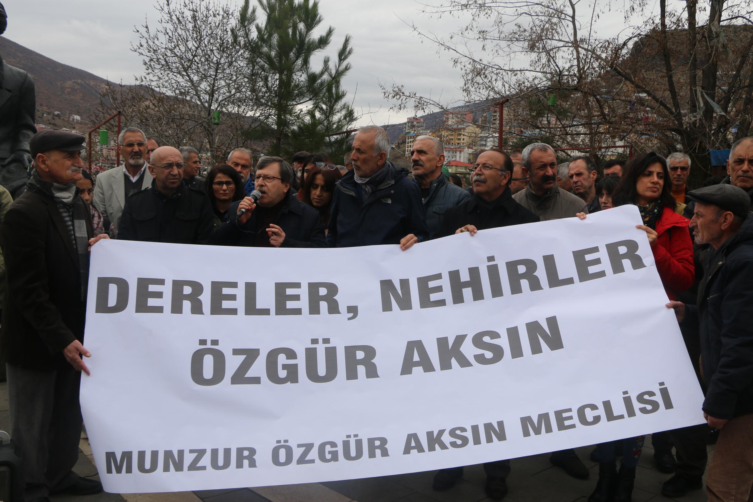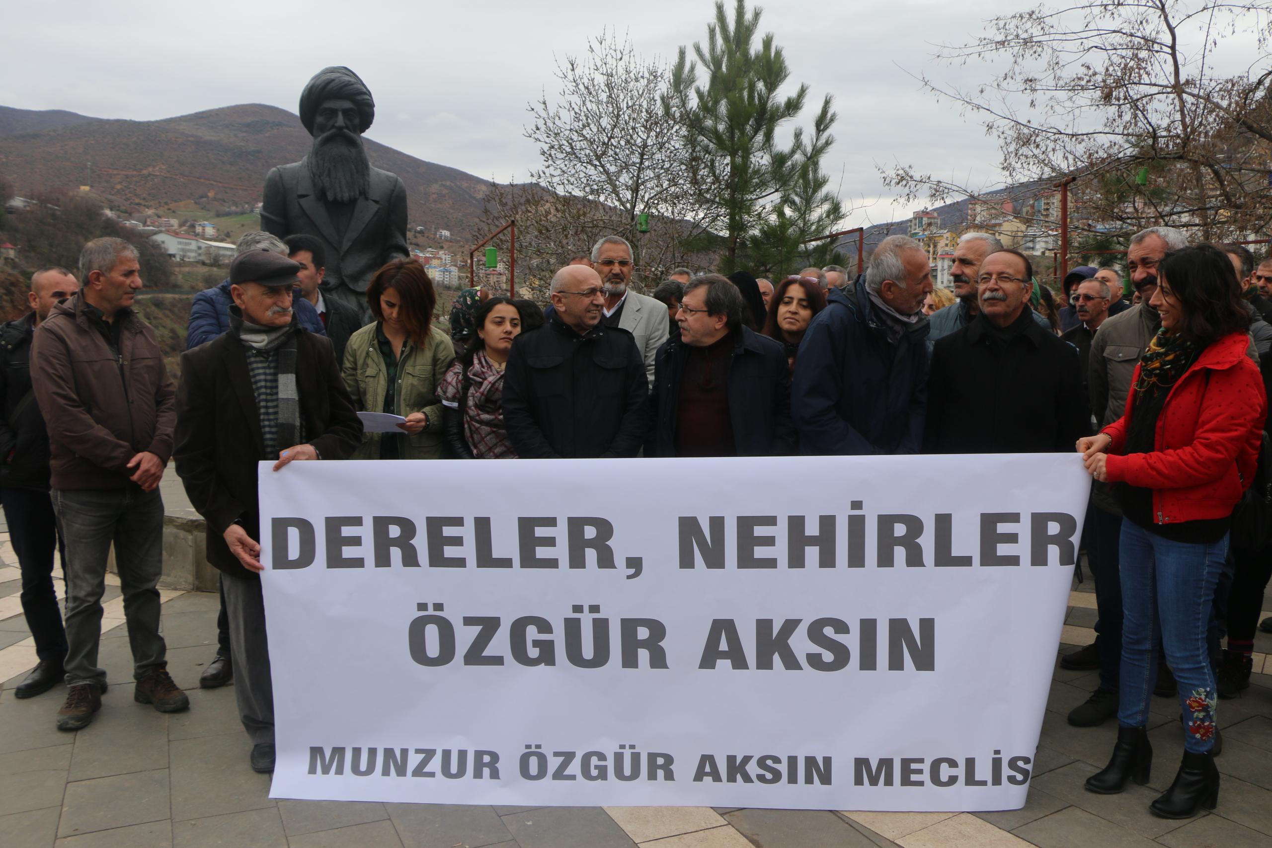 Açıklamaya Munzur Özgür Aksın Meclisi bileşenleri, HDP Örgütlenmeden Sorumlu Eş Genel Başkan Yardımcısı ve Dersim Milletvekili Alican Önlü, HDP Ekolojiden Sorumlu Eş Genel Başkan Yardımcısı Naci Sönmez, Dersim Belediye Başkanı Fatih Mehmet Maçoğlu ile çok sayıda yurttaş katıldı.