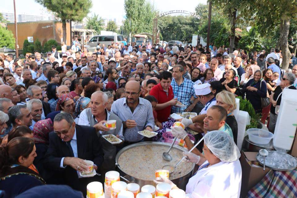 İstanbul Okmeydanı Cemevi ile Garip Dede Dergahı, Kerbela’da katledilenler için 12 gün tutulan yas orucunun sona ermesi üzerine aşure lokması dağıttı.