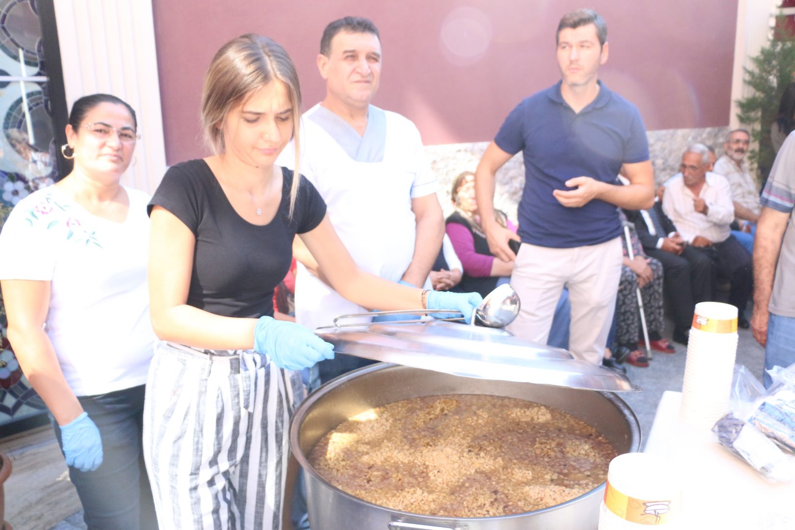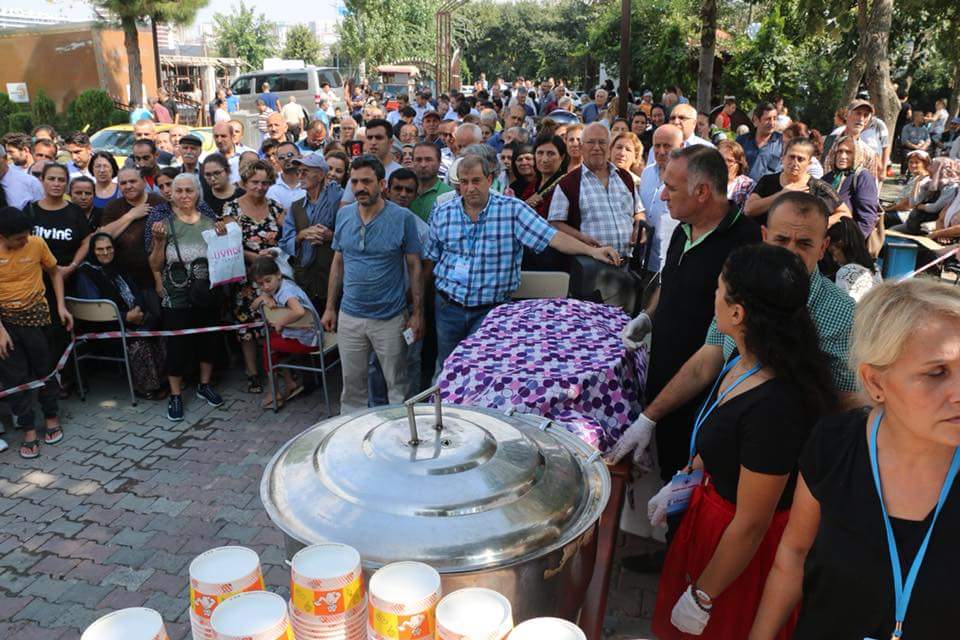 Okmeydanı Cemevi Başkanı Zeynel Şahin’in konuşmasının ardından cemevi dedesi ve Babamasur pirlerinden Eren Yıldırım lokma duası verdikten sonra aşureler gelen canlara paylaştırıldı.