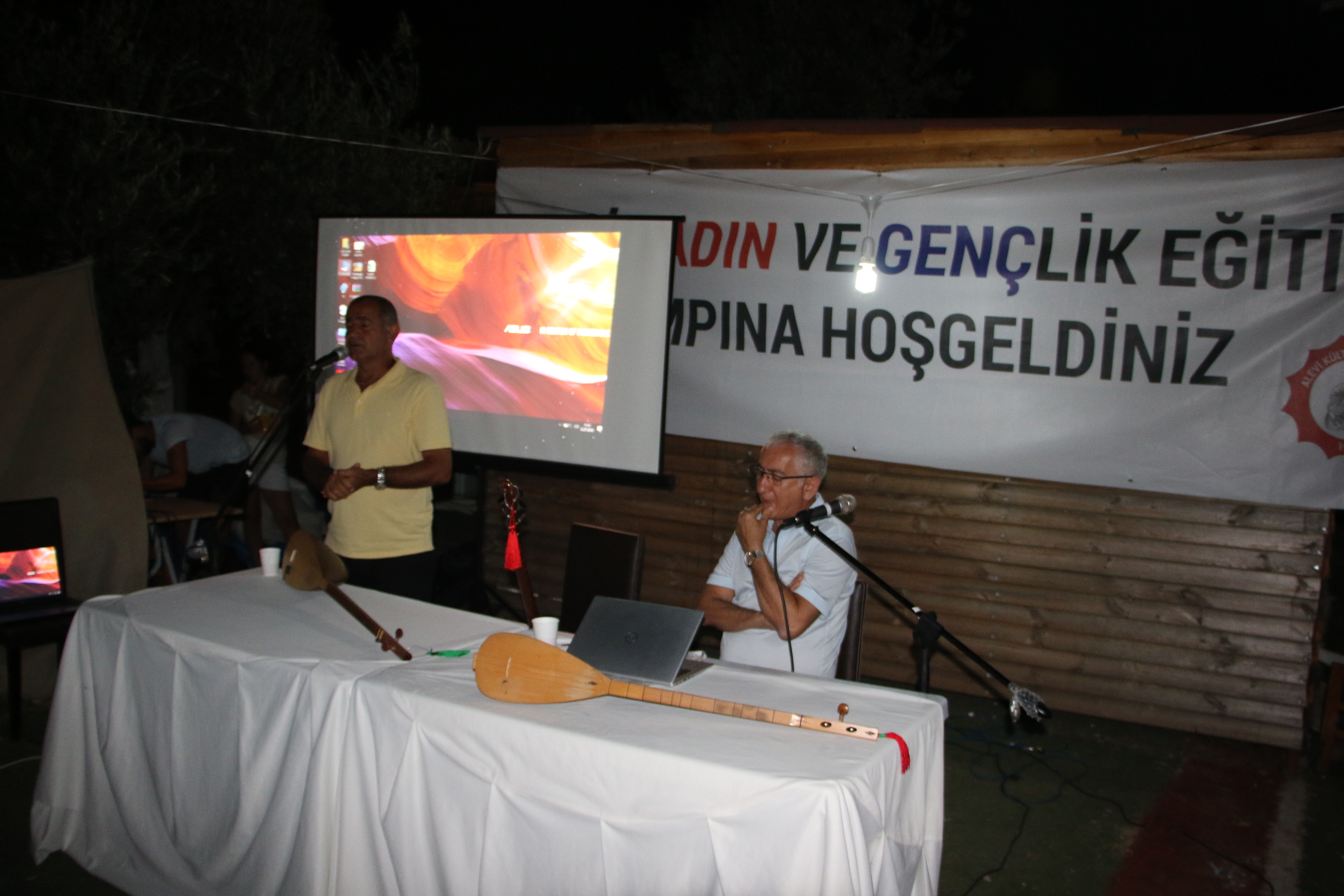 “Bizim inancımızı belirlerken bir araya getiren önemli değerler var. Muhabbet üçleme ile başlar. Her evde telli kuran vardır. Onunla hak kelamları çalınıp söylenir. Barış ve adalet vardı eski kuşaklarda. O muhabbetler cemlerde, muhabbetlerde oluşur. O konuları bize aşılayan aşıklarımızdır. Ve bu aşıklar sözlü geleneği bugüne kadar hafızalarında diri tuttular. 30-40 yıllık tuttuğum kayıtlarda zakir, aşık, dede, kamber cem aşıklarının çalıp söyleme tarzlarında ezbere okuyorlar. O yüzden halk aşıkların eğitimleri usta çırak ilişkileri olur. Saraylarda, kervansaraylar icra edilir. Ve daha çok sevda konularını içerir. Cem aşıkları da halk aşıkları gibi usta çırak ilişkisinde yetişirler ama eğitim öğretimleri cemlerde muhabbetlerdedir. Bunların ürettikleri inancımızı ifade eden ayakta kalmasındaki en önemli etken düne kadar zakir cem aşığı dede idi. Eğer saz çalamıyorsa bile mutlaka cem aşığı bulunur ve birlikte o muhabbeti cemi kurarlar. Cem bizim için okuldur. Bu okulda gönül birliği olması çok önemlidir” dedi. Konuşmaların arasında üçleme yaptılar. (HABER MERKEZİ)