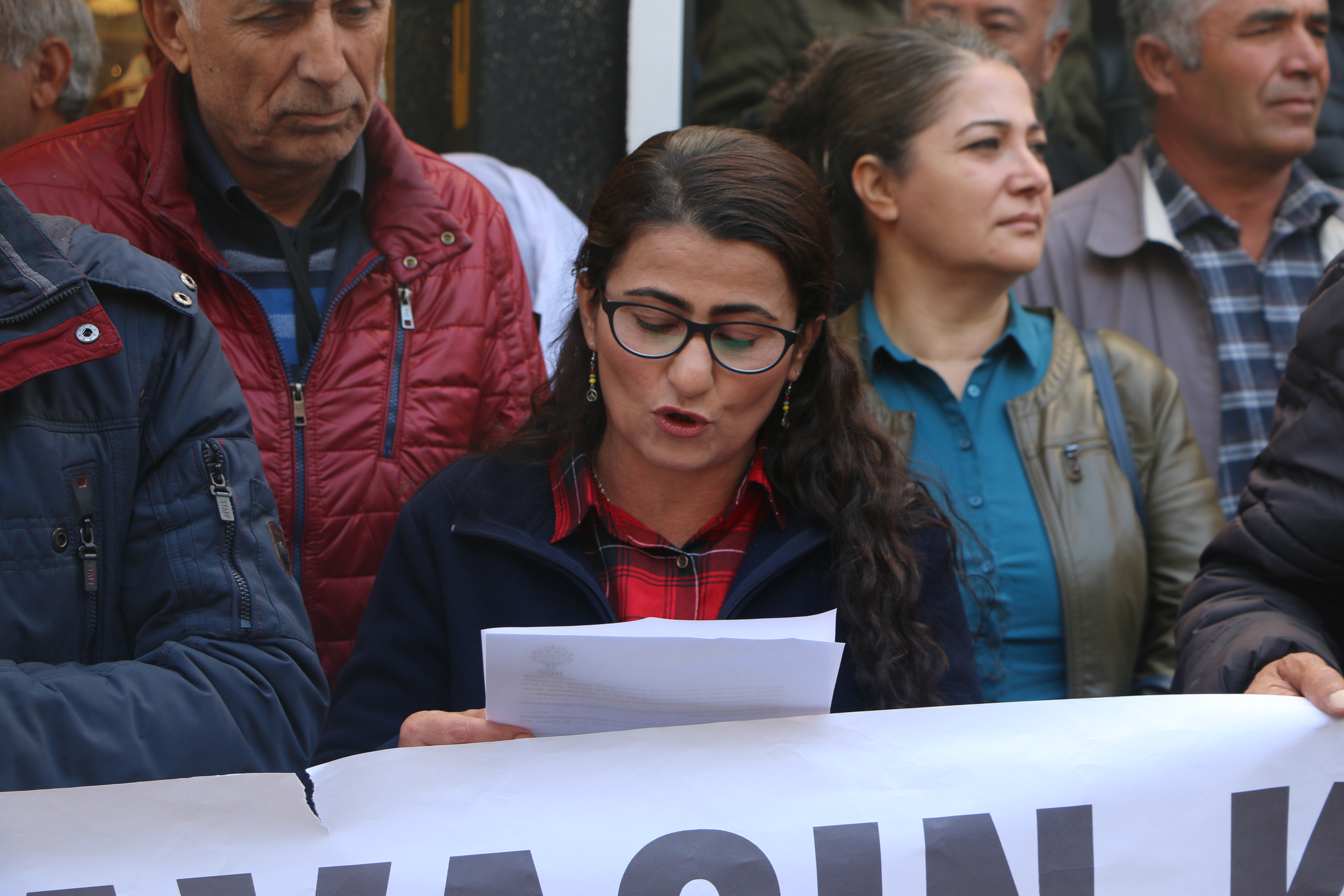 Açıklamayı okuyan HDP Dersim İl Eş Başkanı Özlem Toprak, “Halkları ve inançları baskı altına alarak sürekliliğini sağlayan kapitalist sistem ve tekçi anlayışlar, Kürt halkı başta olmak üzere Ortadoğu’da demokratik yaşamı savunan herkesi hedefine koymaktadır. Küresel güçler ve bölgesel devletlerin halklara ve inançlara karşı birleşmelerinin en son örneğine 9 Ekim 2019 tarihinde Kuzey-Doğu Suriye’de başlatılan işgal saldırıları ile bir kez daha gördük. İçinde bulunduğumuz zaman dilimi oldukça önemli bir eşiktir. Bedeller ödenerek eşit ve demokratik yaşam inşasının yükseltildiği bu zaman diliminde demokrasiyi boğmak isteyen otoriter, tekçi yapılar ise zorbalığı ve savaşı dayatmaktadır.” ifadelerini kullandı.