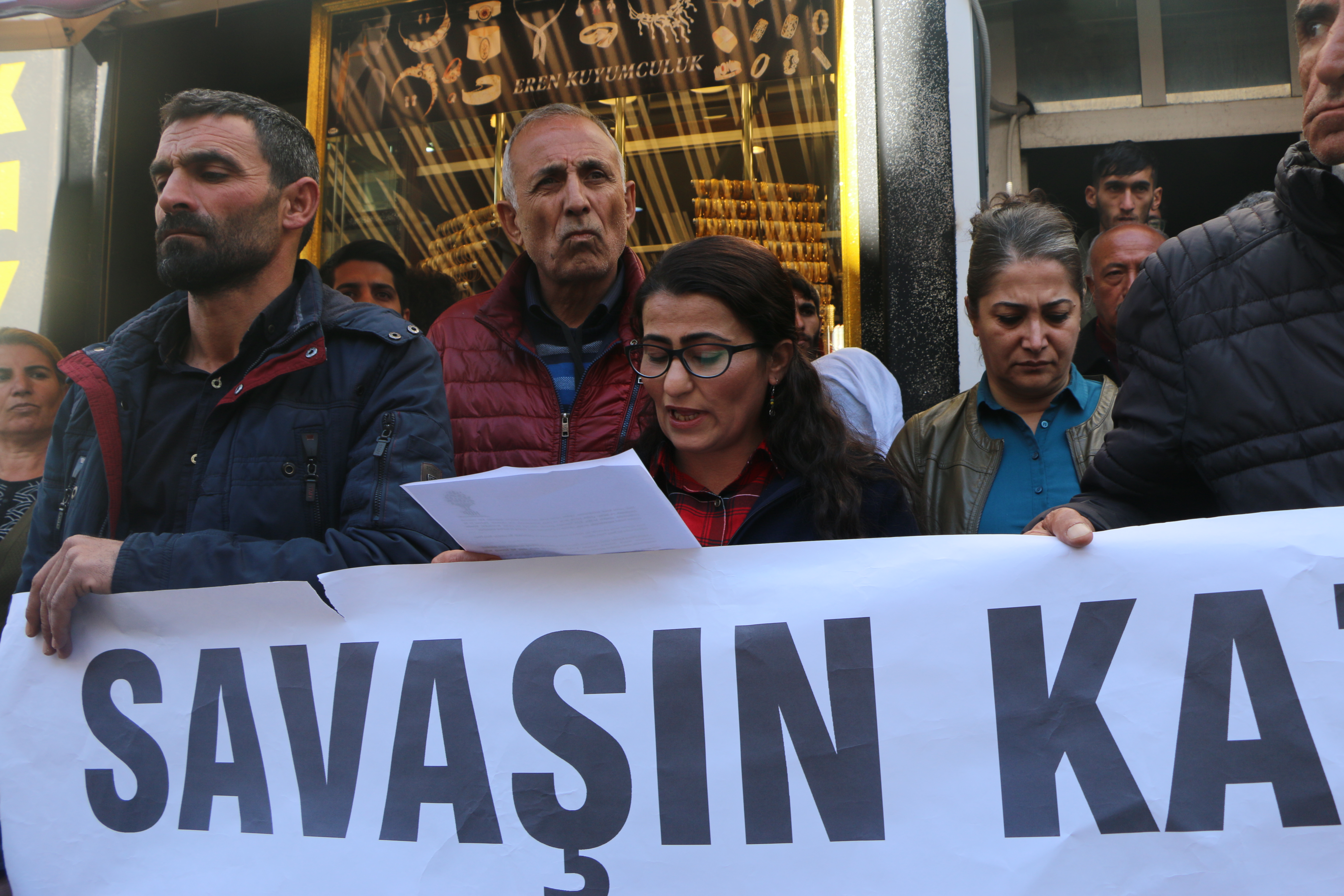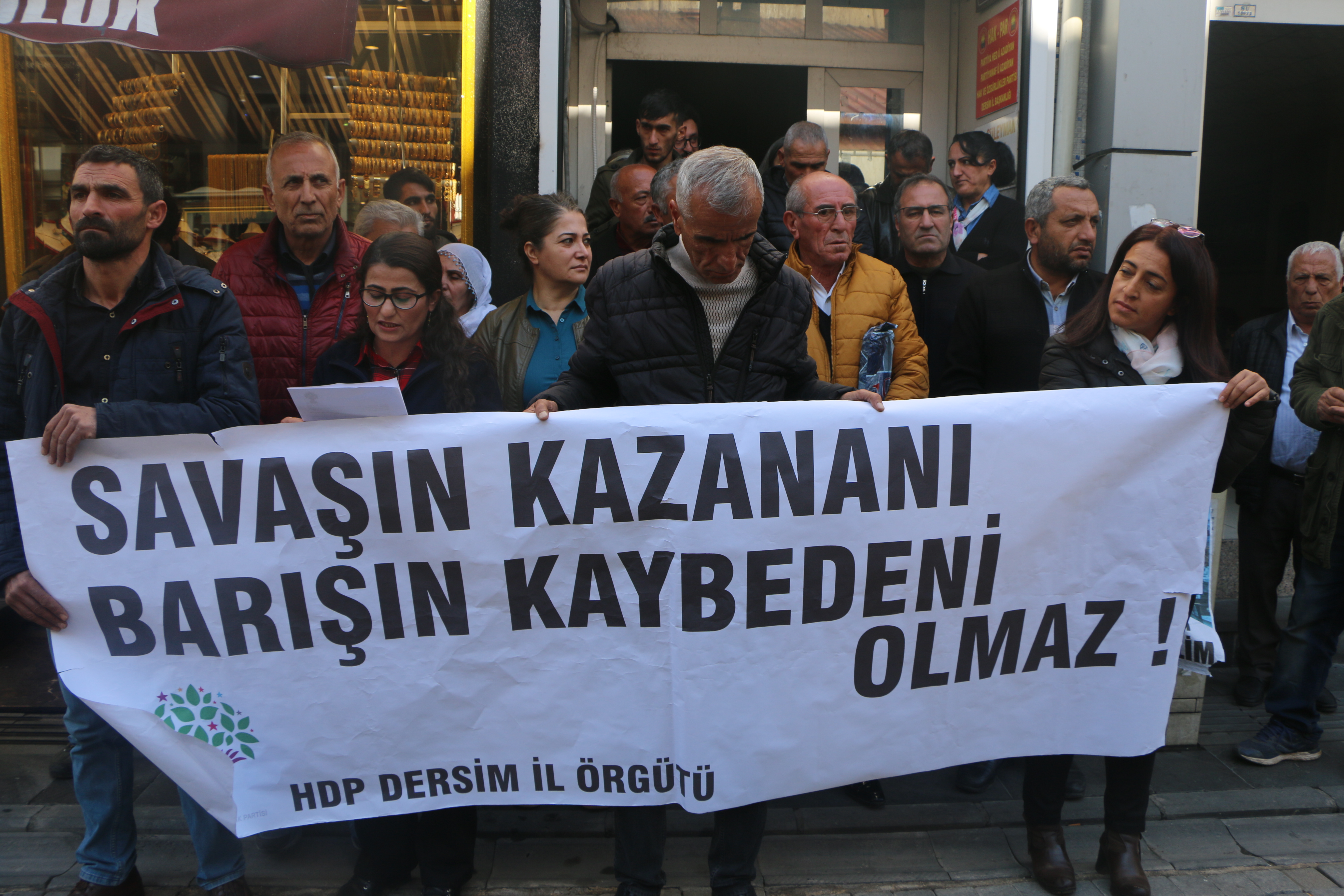 Açıklamayı okuyan HDP Dersim İl Eş Başkanı Özlem Toprak, “Halkları ve inançları baskı altına alarak sürekliliğini sağlayan kapitalist sistem ve tekçi anlayışlar, Kürt halkı başta olmak üzere Ortadoğu’da demokratik yaşamı savunan herkesi hedefine koymaktadır. Küresel güçler ve bölgesel devletlerin halklara ve inançlara karşı birleşmelerinin en son örneğine 9 Ekim 2019 tarihinde Kuzey-Doğu Suriye’de başlatılan işgal saldırıları ile bir kez daha gördük. İçinde bulunduğumuz zaman dilimi oldukça önemli bir eşiktir. Bedeller ödenerek eşit ve demokratik yaşam inşasının yükseltildiği bu zaman diliminde demokrasiyi boğmak isteyen otoriter, tekçi yapılar ise zorbalığı ve savaşı dayatmaktadır.” ifadelerini kullandı.