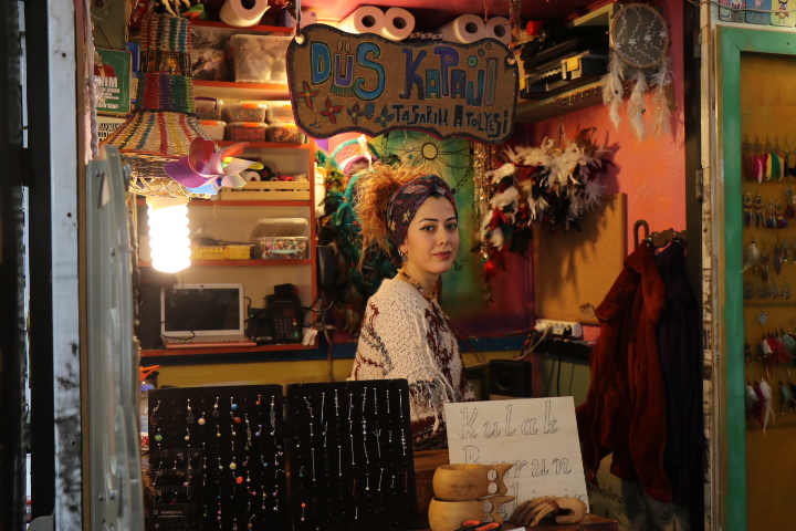 Sevgi Yolu Sokağı’nda tasarım ürünlerin satıldığı ‘Düş kapanı’ standını işleten 27 yaşındaki Sevilay Akduman, öğrencilik yıllarında çokça geldiği bu sokakta iş yapmanın heyecan verdiğini söylüyor. Akduman, sokaktaki en dikkat çekici standın ‘Düş kapanı’ olduğunu ürünlerinin desenli ve renkleriyle ilgi çektiğini belirtiyor.