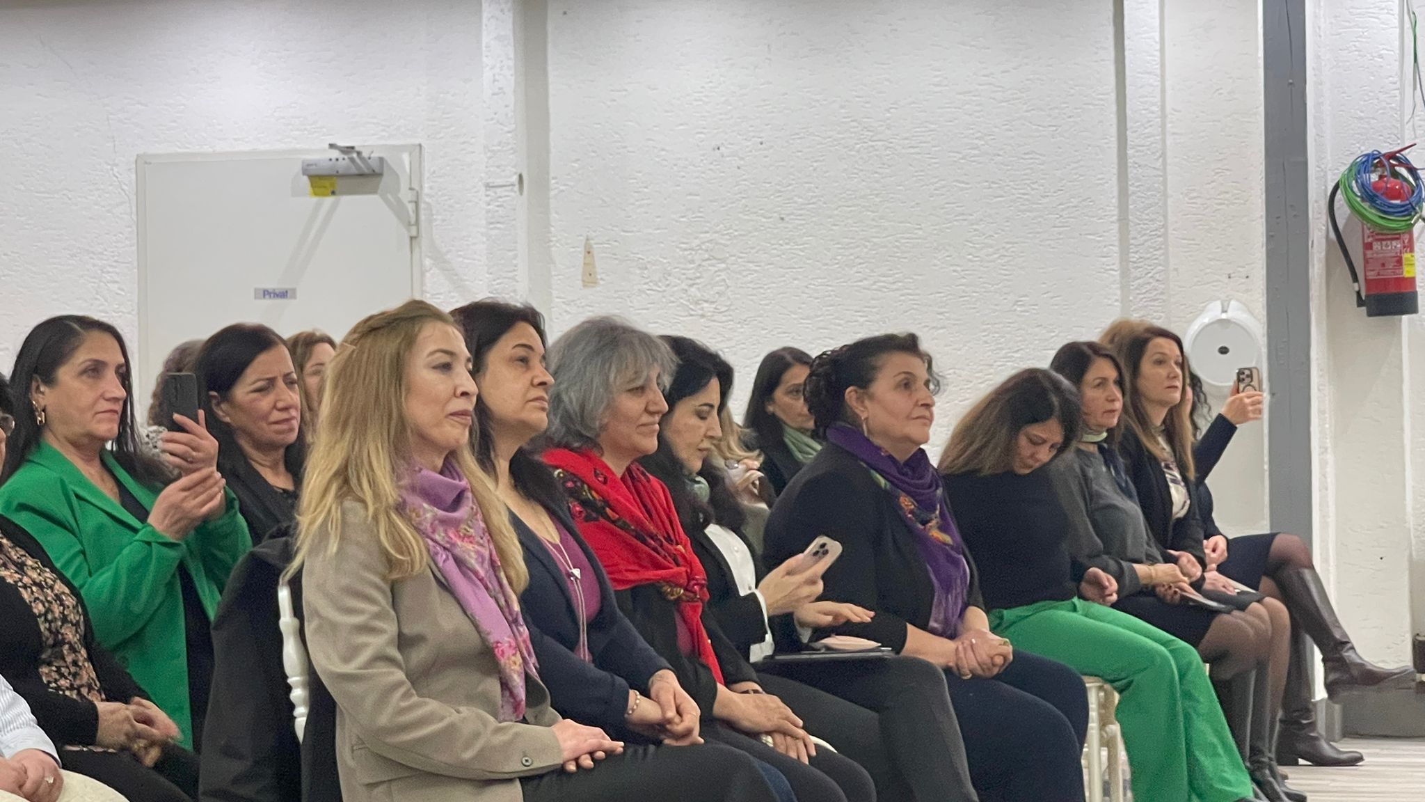 Moderatörlüğünü Gülay Bektaş’ın yaptığı panele DEM Parti Eş Genel Başkanı Tülay Hatimoğulları, AAKB Genel Başkanı Özgür Demir, AAKB Genel Başkanı Leyla Solmaz, FEDA Eş Başkanı Huriye Kabayel, Göçmen Kadınlar Derneği Başkanı Dr. Esma Çakır Ceylan ve Düsseldorf Cemevi Onursal Başkanı Canan Sarı konuşmacı olarak katıldı.