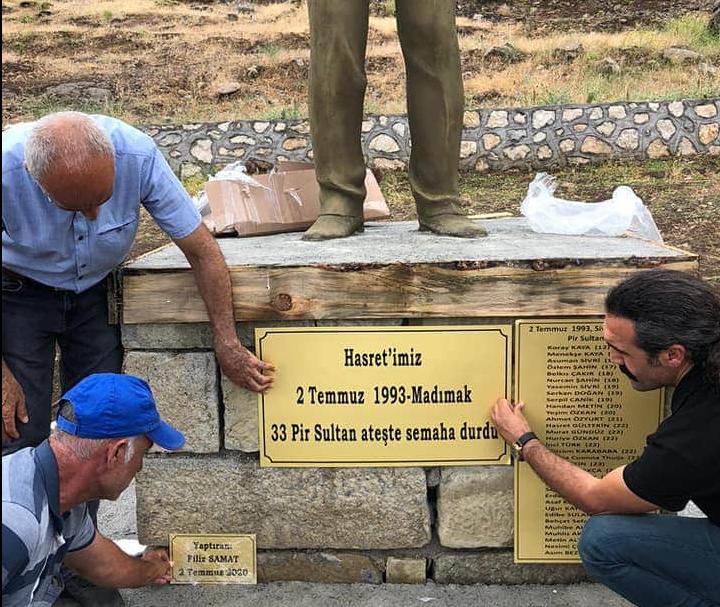 Dersim’de 16 Temmuz Nazımiye Düzgün Baba Cemevi bahçesinde açılışının yapılması planlanan Hasret Gültekin anıtı ve Sivas Katliamı’nda yaşamını yitiren 33 canın isminin olduğu kaideler, yerlerinden sökülerek cemevinin arkasına atıldı.