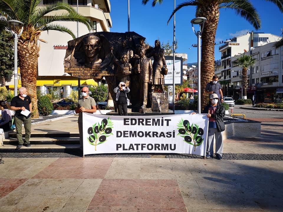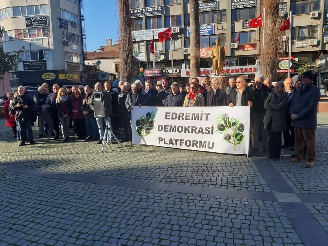 Edremit Demokrasi Platformu gittikçe artan baskı politikalarına ilişkin yazılı açıklama yaptı. Açıklamada, “Barolara, Odalara, Tabipler Birliğine, muhalif siyasi partilere, gazetecilere, demokratik kitle örgütlerine, inanç örgütlerine yönelik baskı, sindirme, gözaltı, tutuklama saldırılarına her geçen gün bir yenisi eklendiği belirtildi.