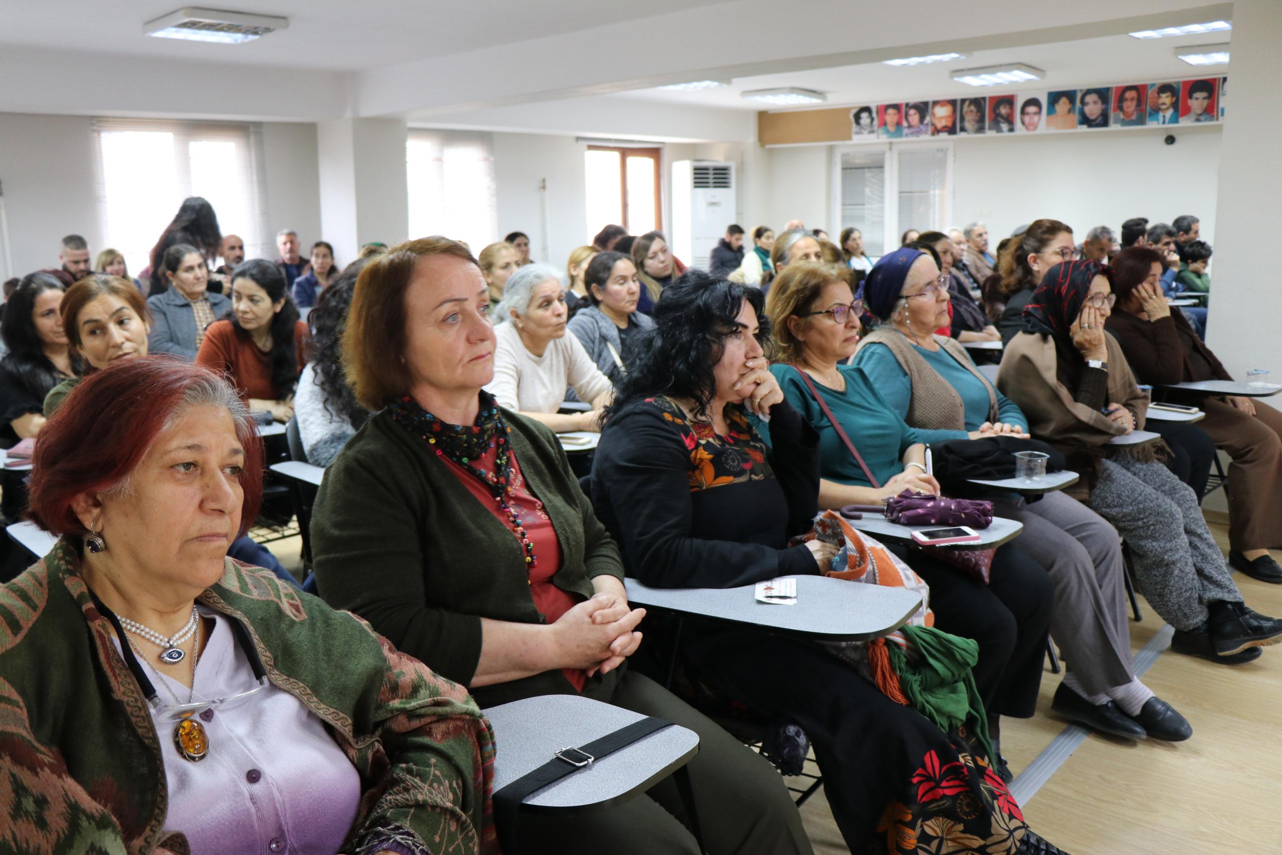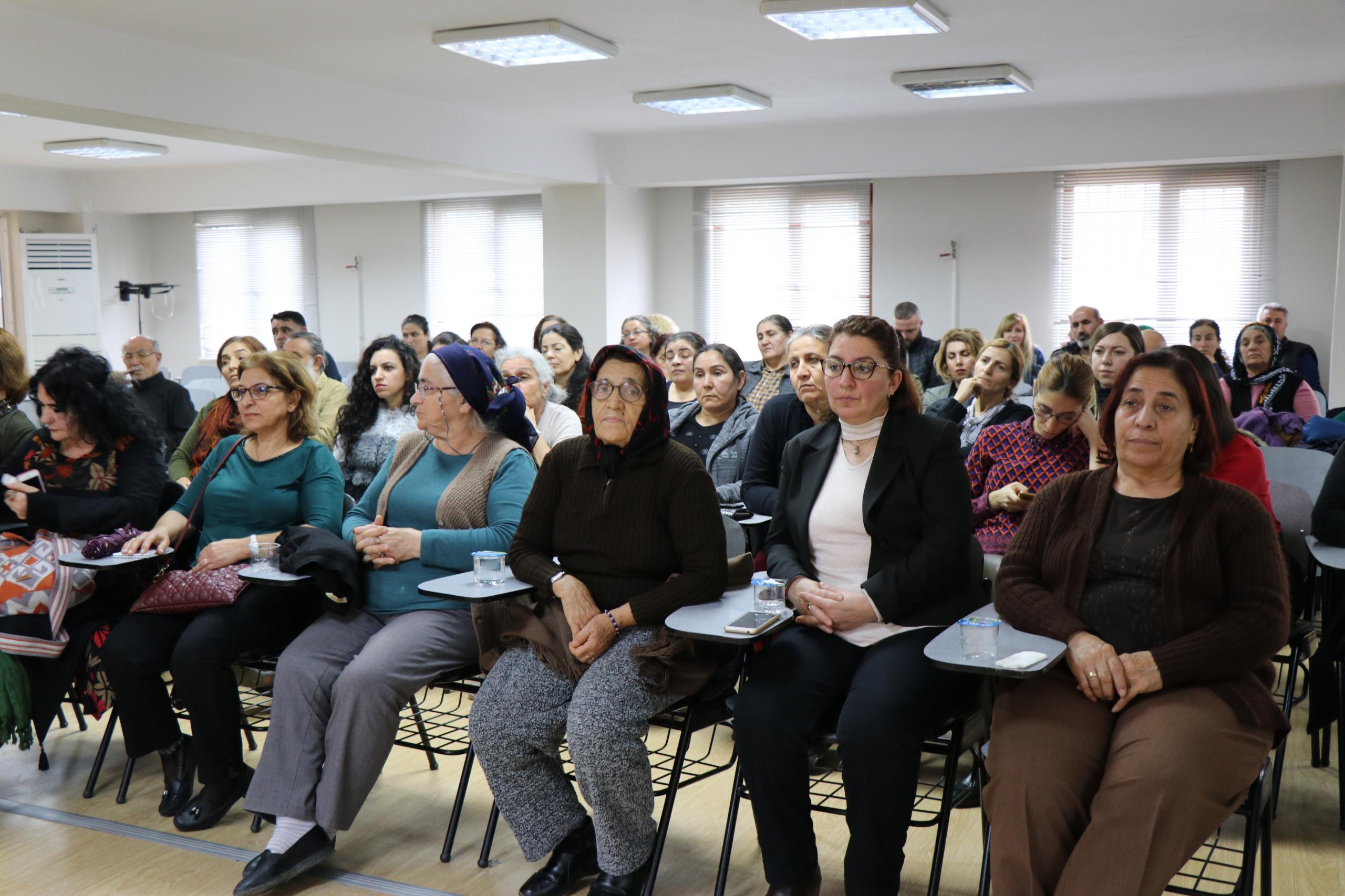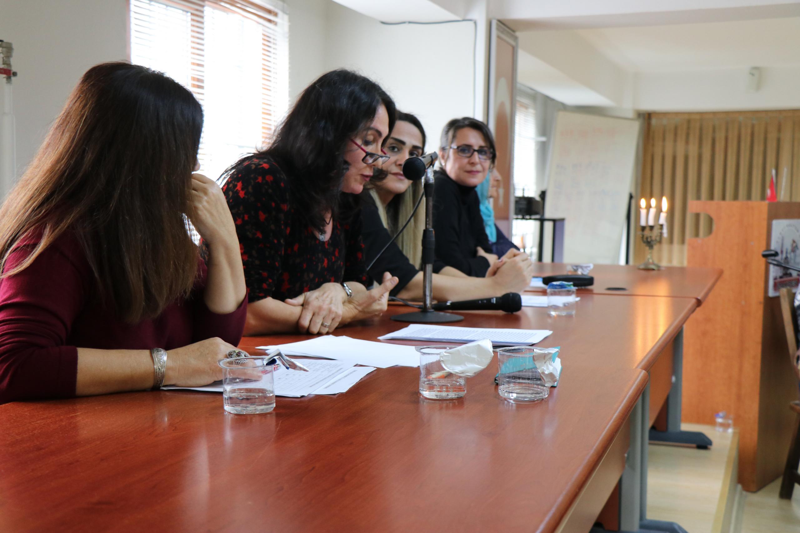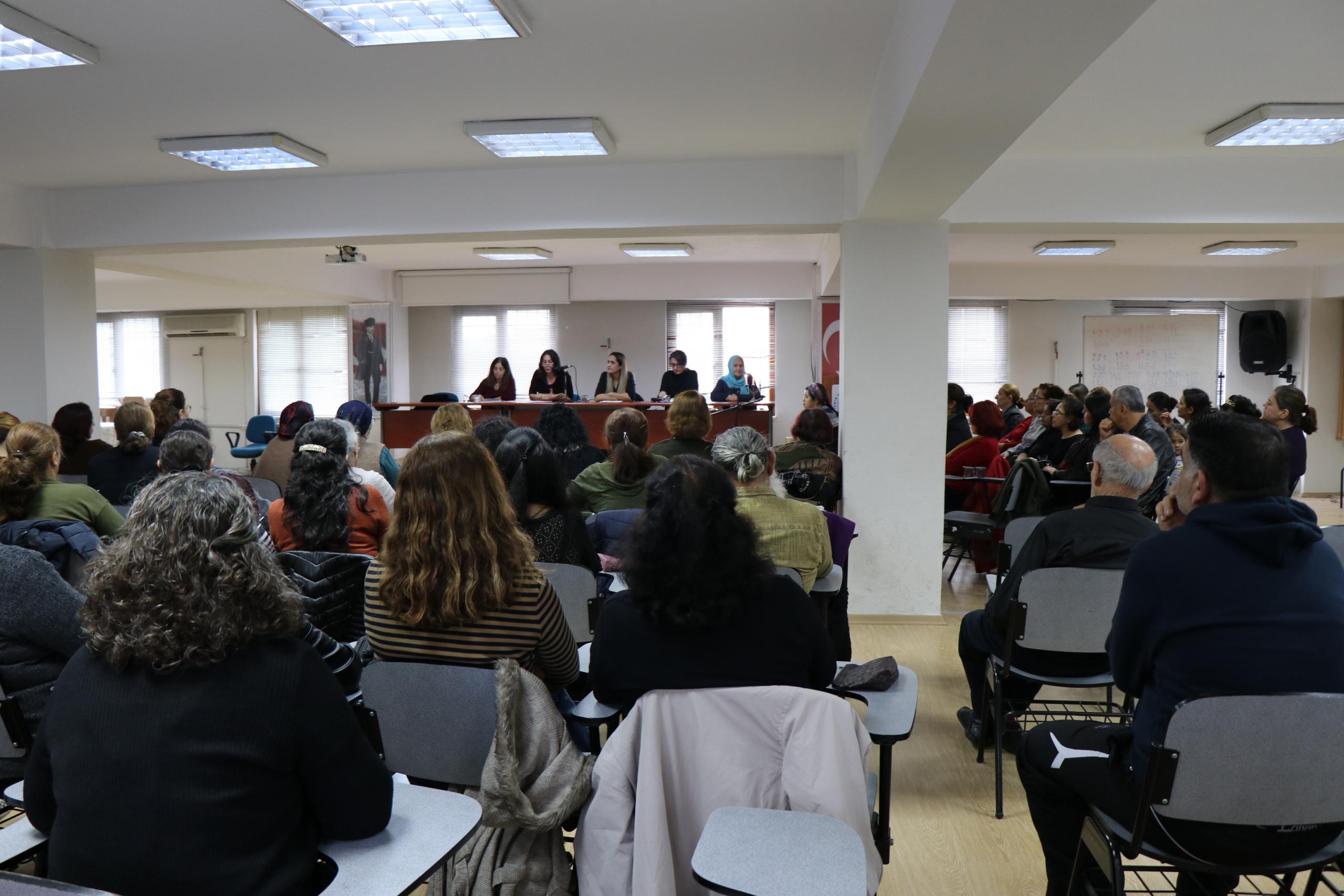 Panelistler Sevim Savunmaz ‘Ege Bölgesindeki Alevi Kadının Durumu’, Serpil Deniz Şahin ‘Tarihte Alevi Kadının Yeri’, ve Çilem Küçükkeleş ‘Alevilikte Kadının Yeri’ başlıklarıyla sunumlarını gerçekleştirdi.