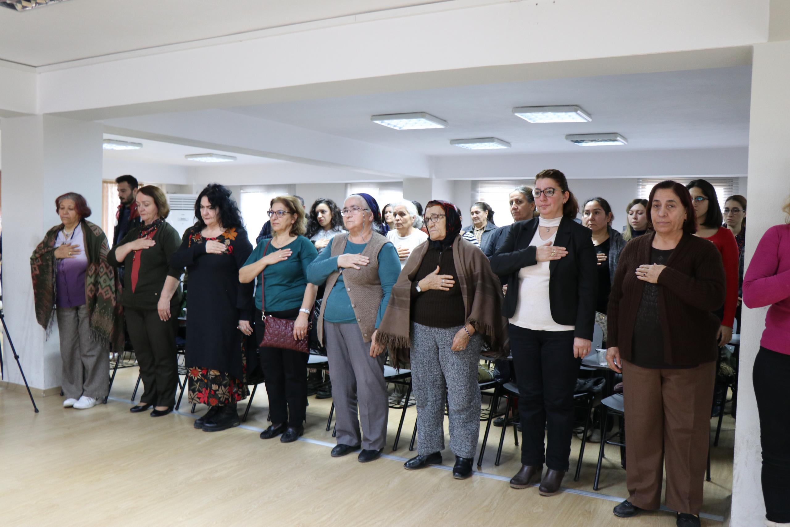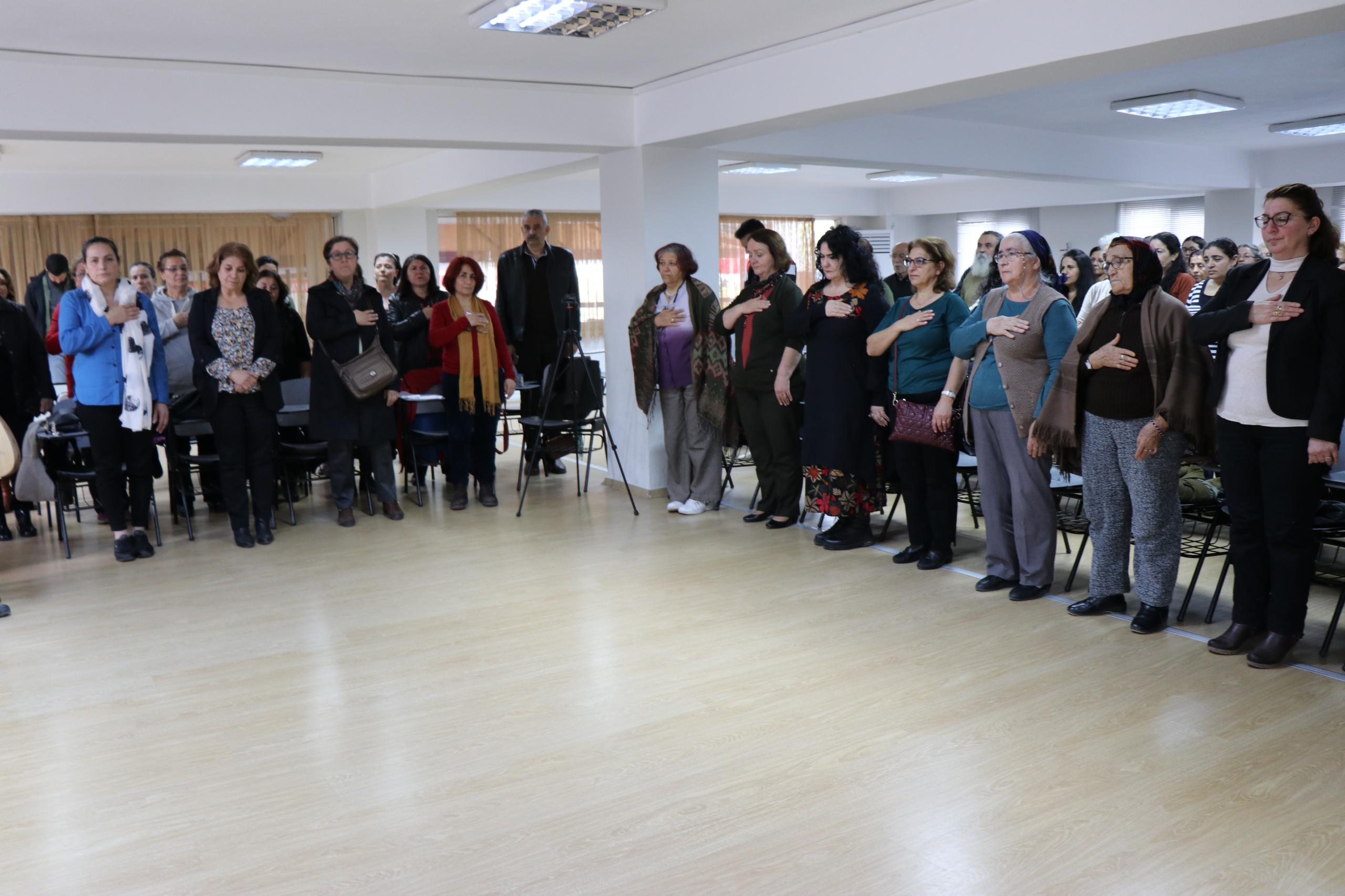 İzmir Alevi Kültür Derneği Yamanlar Cemevi Kadın Kolları öncülüğünde gerçekleşen ‘Tarih Boyunca Alevi Kadının Yeri’ paneline çok sayıda yurttaş katıldı. Panel öncesi çerağ uyandırılarak, hak yolunda hakka yürüyenler için bir dakikalık saygı duruşunda bulunuldu. Çerağ uyandırılması ardından Zakir Demet Aykut hak nefesi okudu.