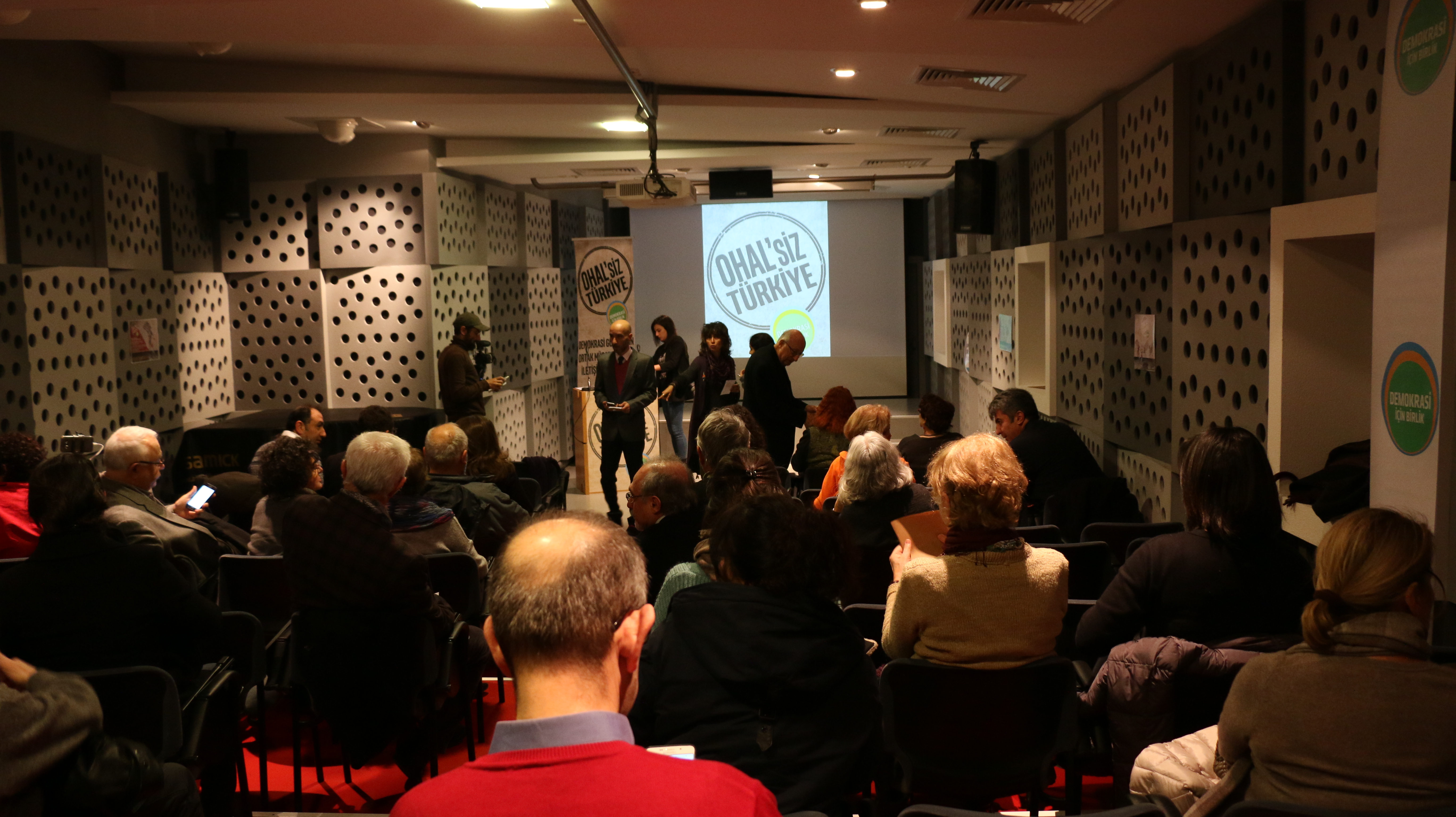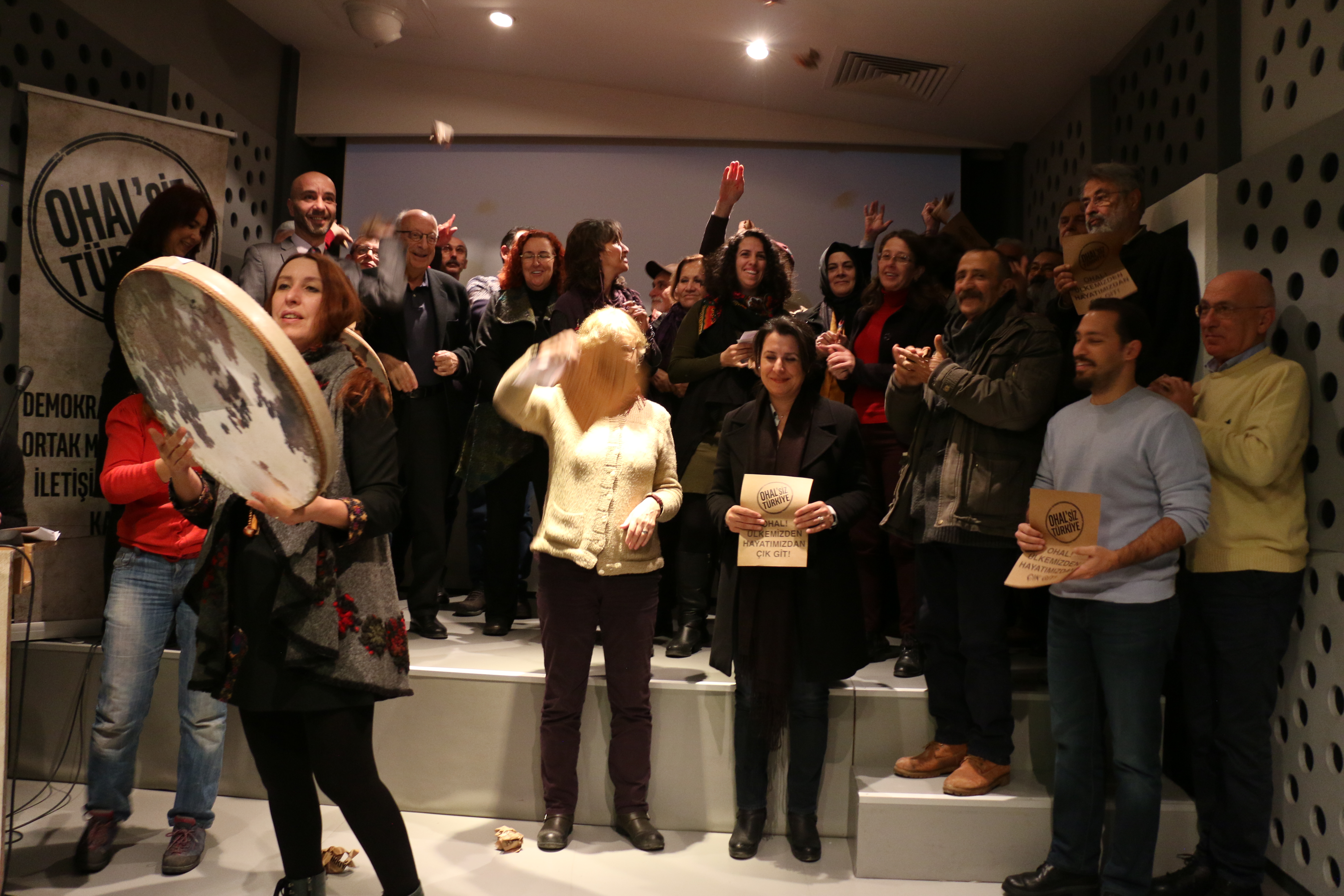 İstanbul Galatasaray Aynalı Geçit Etkinlik Pasajı’nda Demokrasi İçin Birlik toplantısı için siyasi parti temsilcileri, yazarlar, gazeteciler, akademisyenler biraraya gelerek basın toplantısı gerçekleşti. Toplantı erbane grubunun ‘KHK’lere Hayır OHAL’e de Hayır’ şarkısıyla başladı. Toplantı sunumunu Çelik Özdemir ve İran Avşin yaptı. Demokrasi için ilk adımın OHAL’siz bir Türkiye olması gerektiği belirtilen açıklamada, bir yaşam biçimi haline getirilen OHAL’in kaldırılması gerektiği vurgulandı.