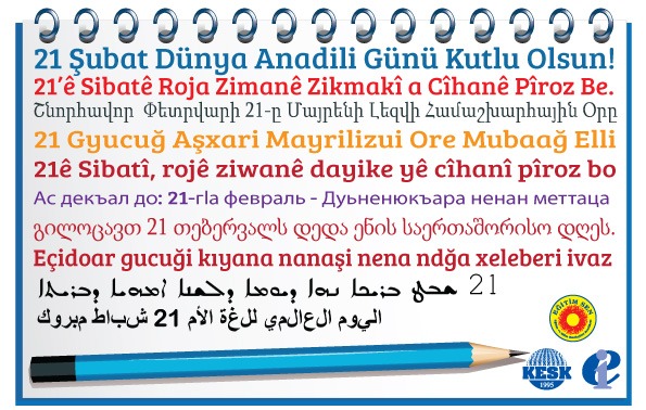 Eğitim Sen olarak, tüm dünya ve Türkiye halklarının 21 Şubat Dünya Anadili Günü’nü kutluyor, farklı anadili ve kültürlerin özgürce yaşaması ve gelişmesinin önündeki bütün yasal ve fiili engellerin kaldırılmasını talep ediyoruz.”