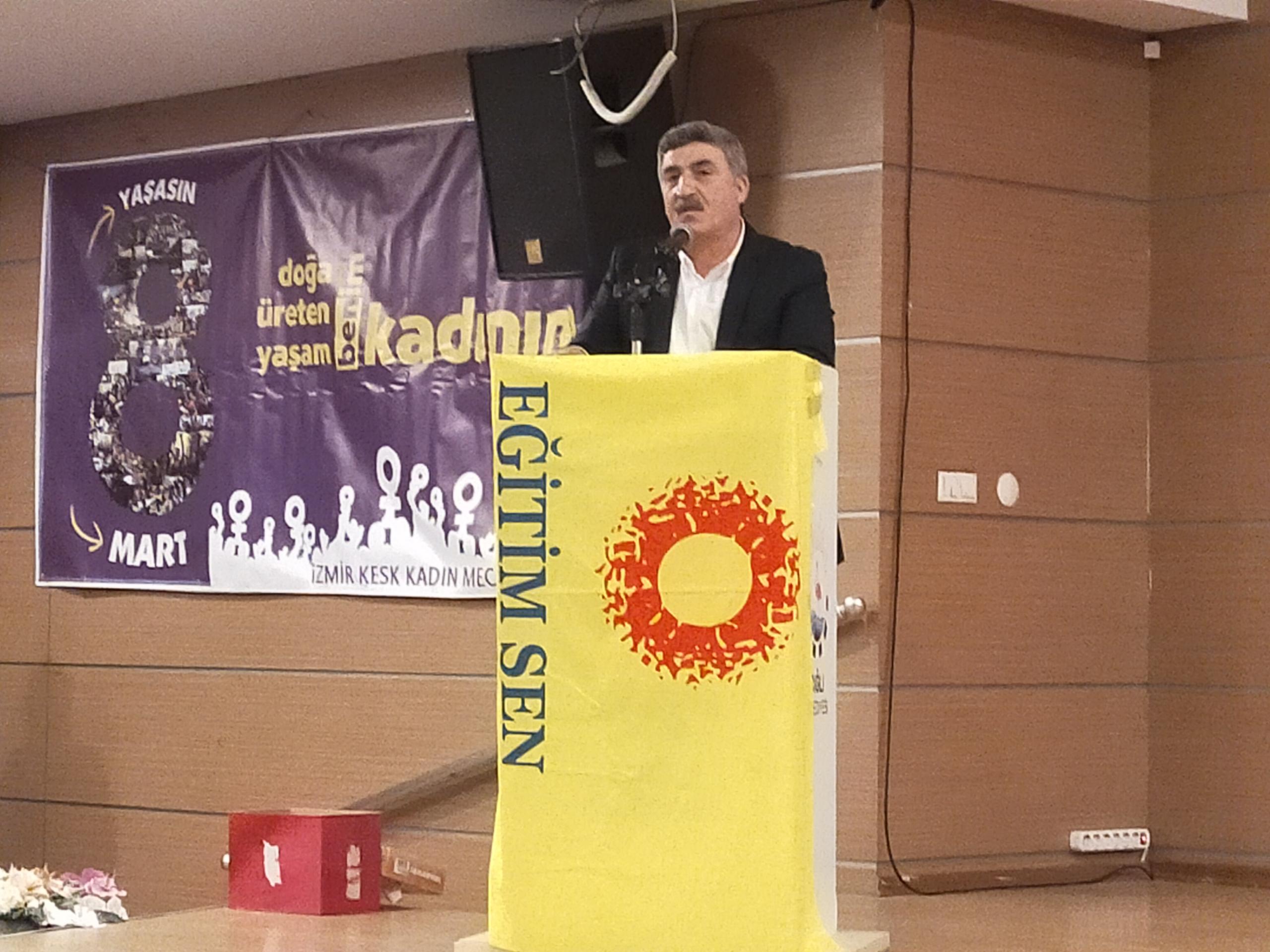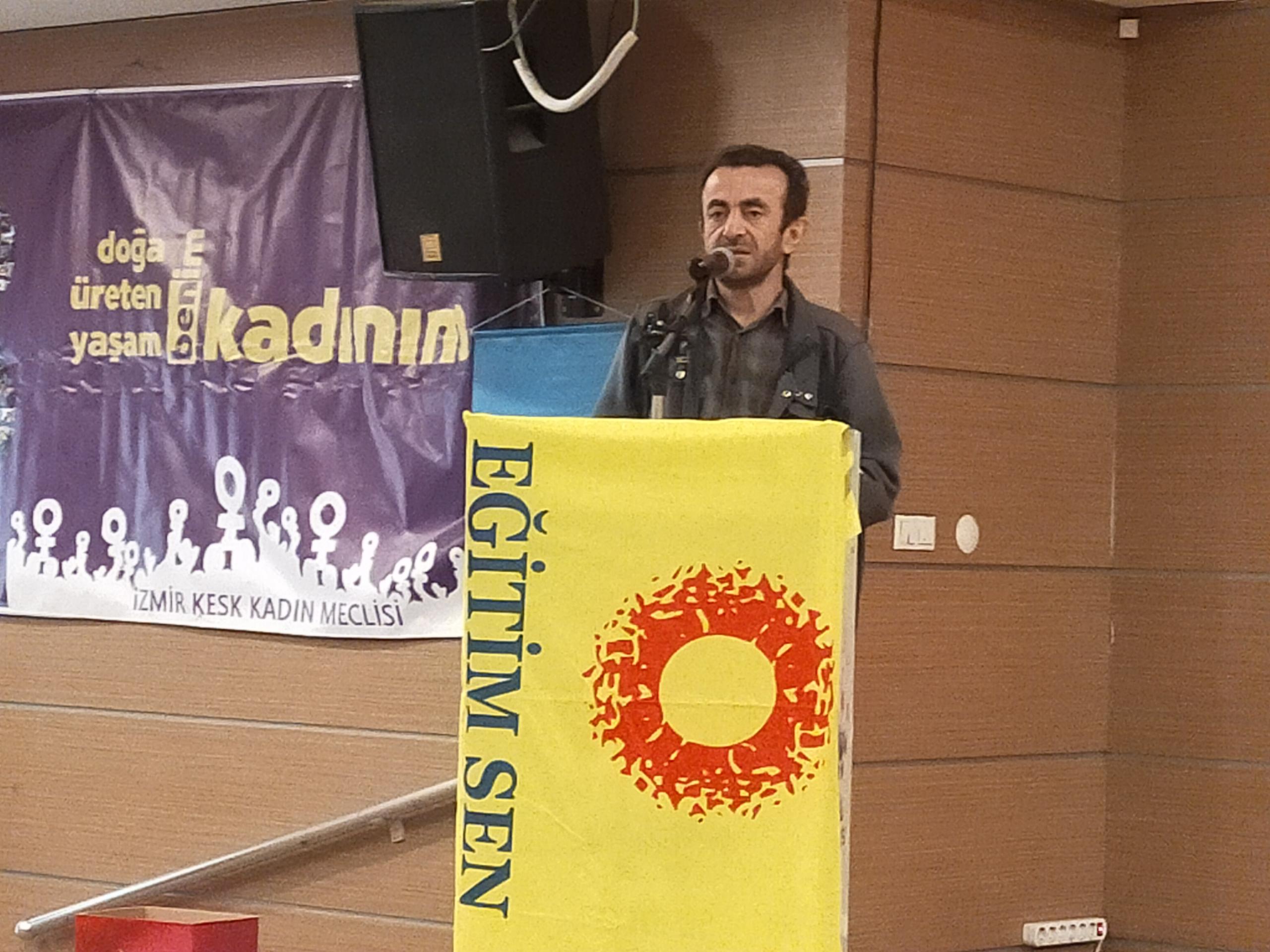 Eğitim-Sen İzmir 2 No’lu Şube Başkanı Hasan Ali Kılıç, son 30 yıllık mücadele deneyimi içerisinde 15 Temmuz darbe girişiminden sonra yaşadıkları baskılara dikkat çekti. Kılıç, “Örgütlülüğümüze yapılan saldırılar Cumhuriyet tarihinde eşi benzeri bulunmamış saldırılarla karşı karşıya kaldık” dedi.