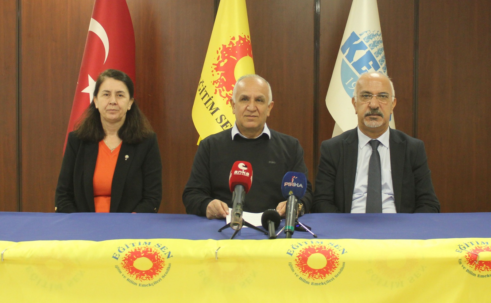 Eğitim ve Bilim Emekçileri Sendikası (Eğitim Sen), Milli Eğitim Bakanı Yusuf Tekin’in laiklik karşıtı açıklamaları hakkında basın açıklaması yaptı. Açıklamayı Eğitim Sen Genel Başkanı Kemal Irmak okudu.