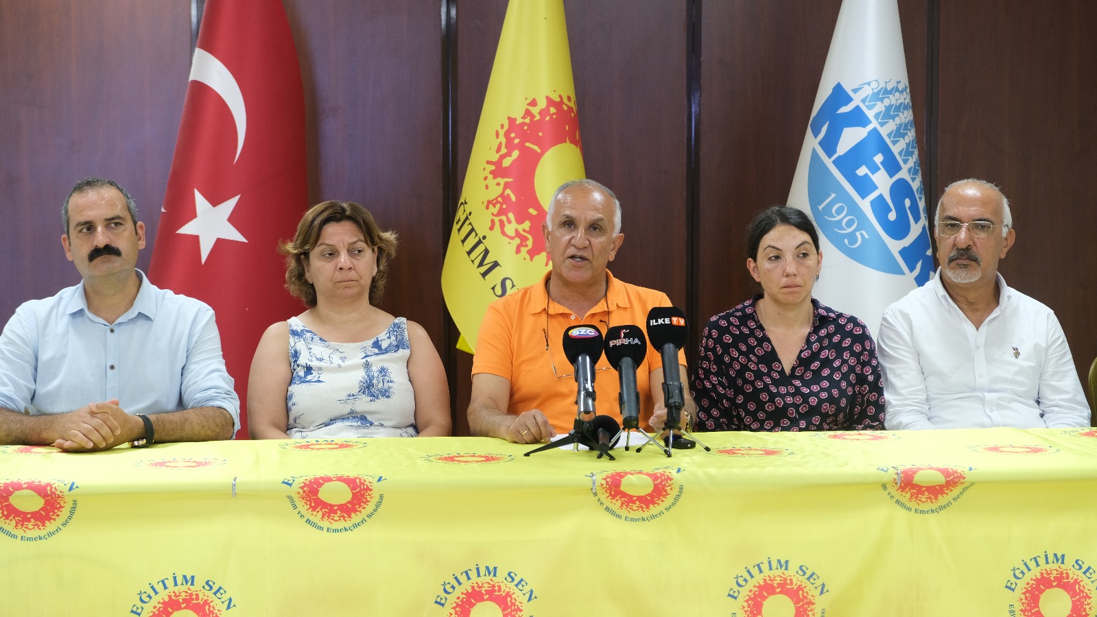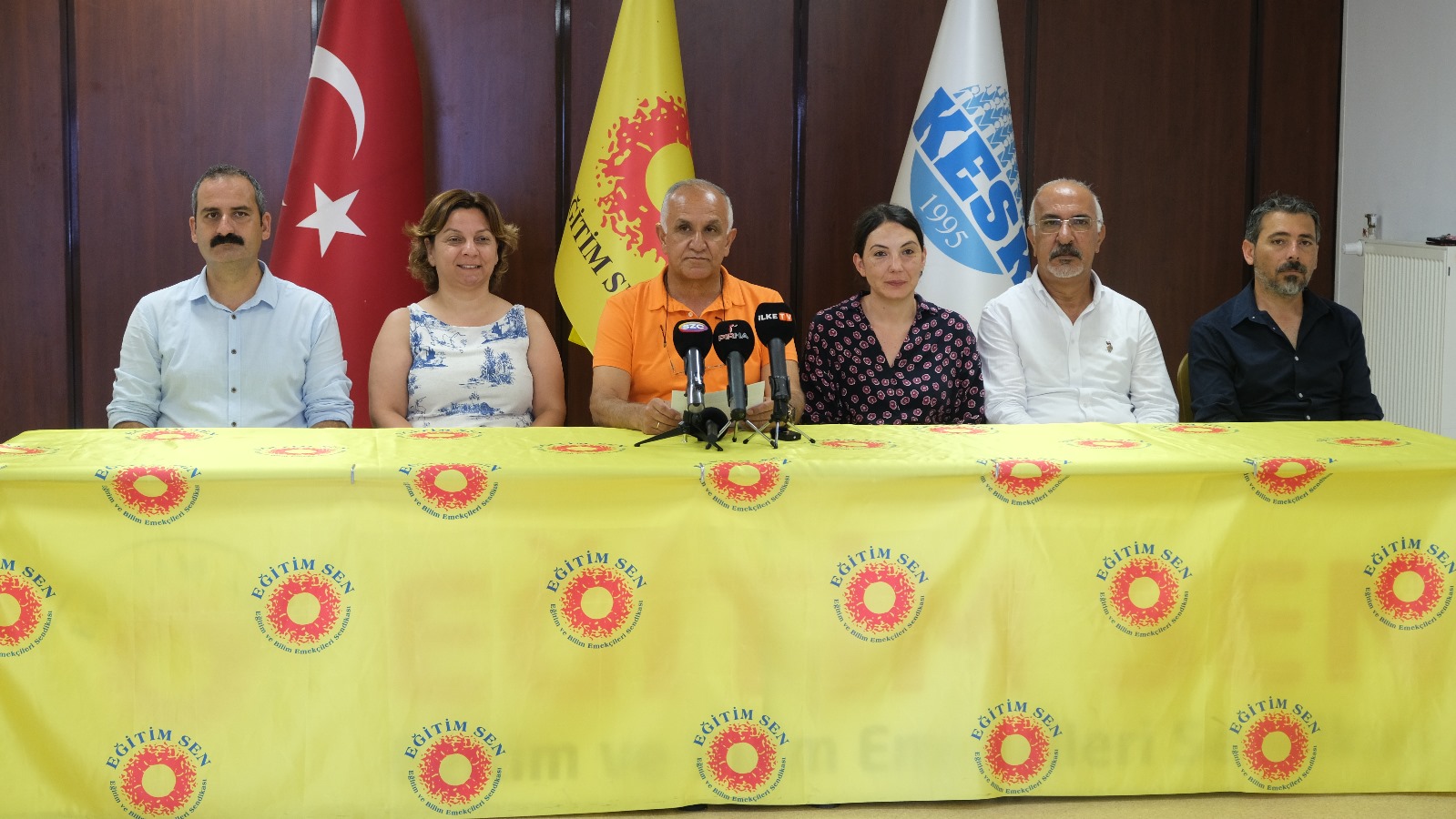 Eğitim Sen Genel Merkezi’nde yapılan açıklamada basın metnini Eğitim Sen Genel Başkanı Kemal Irmak okudu.