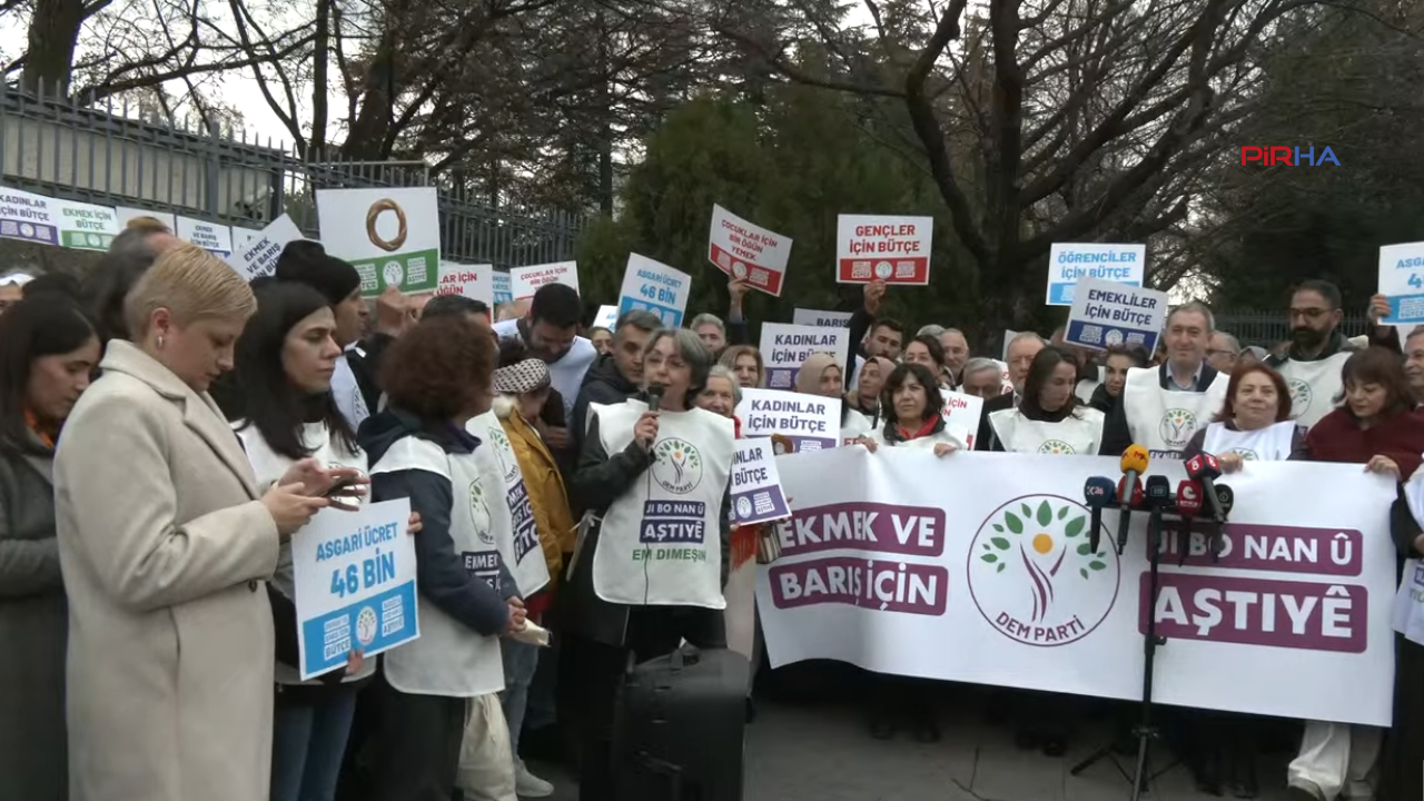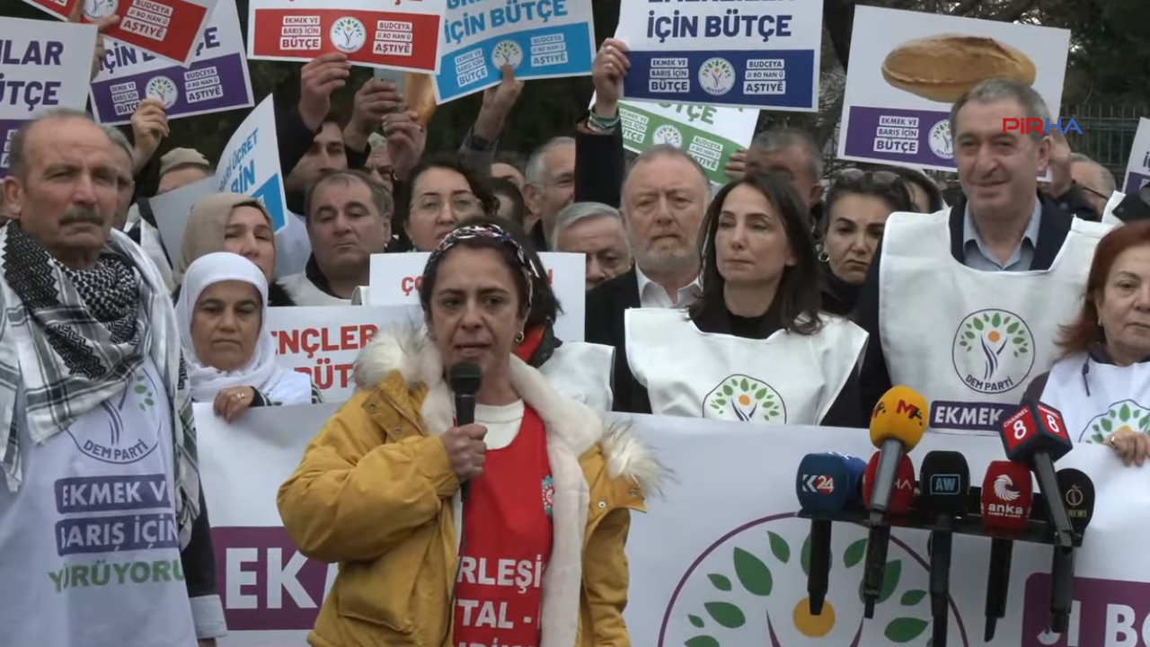 PİRHA-DEM Parti’nin “Ekmek ve barış için bütçe” şiarıyla 12 Aralık’ta başlattığı yürüyüş Ankara’ya ulaştı. DEM Parti Eş Genel Başkanlar Tülay Hatimoğulları ve Tuncer Bakırhan, “Savaşa değil, halka bütçe. Savaşa değil, emekçiye bütçe” demeye devam edeceklerini belirtti.