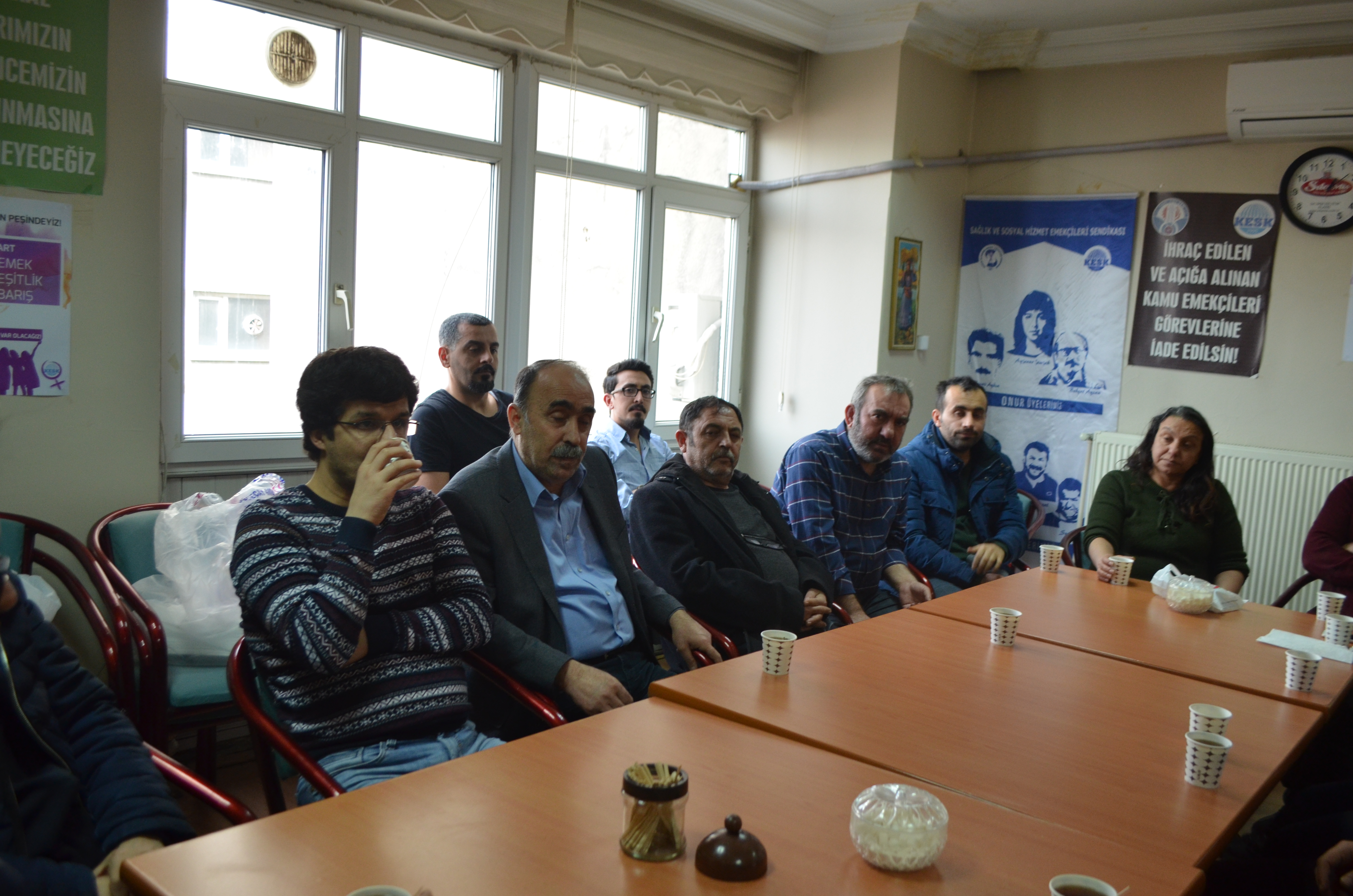 “Alanlara çıkmayı bize yasakladılar. Dünya Kadınlar Günü’nde dünynanın her yerinde kutlanıyor. İlimizde yaptığımız başvuru gerekçe neyse bilmiyoruz, izin verilmedi. Sendikalarımızda oturmaya devam ediyoruz. Bugün 8 Mart etkinliği vardı, Yapı-Yol Sen de önümüzdeki süreçle ilgili çalışma vardı. Bugün oturma eylemimiz farklı bir boyut aldı. Ama her cumartesi oturma eylemimiz devam ediyor fark yok.”