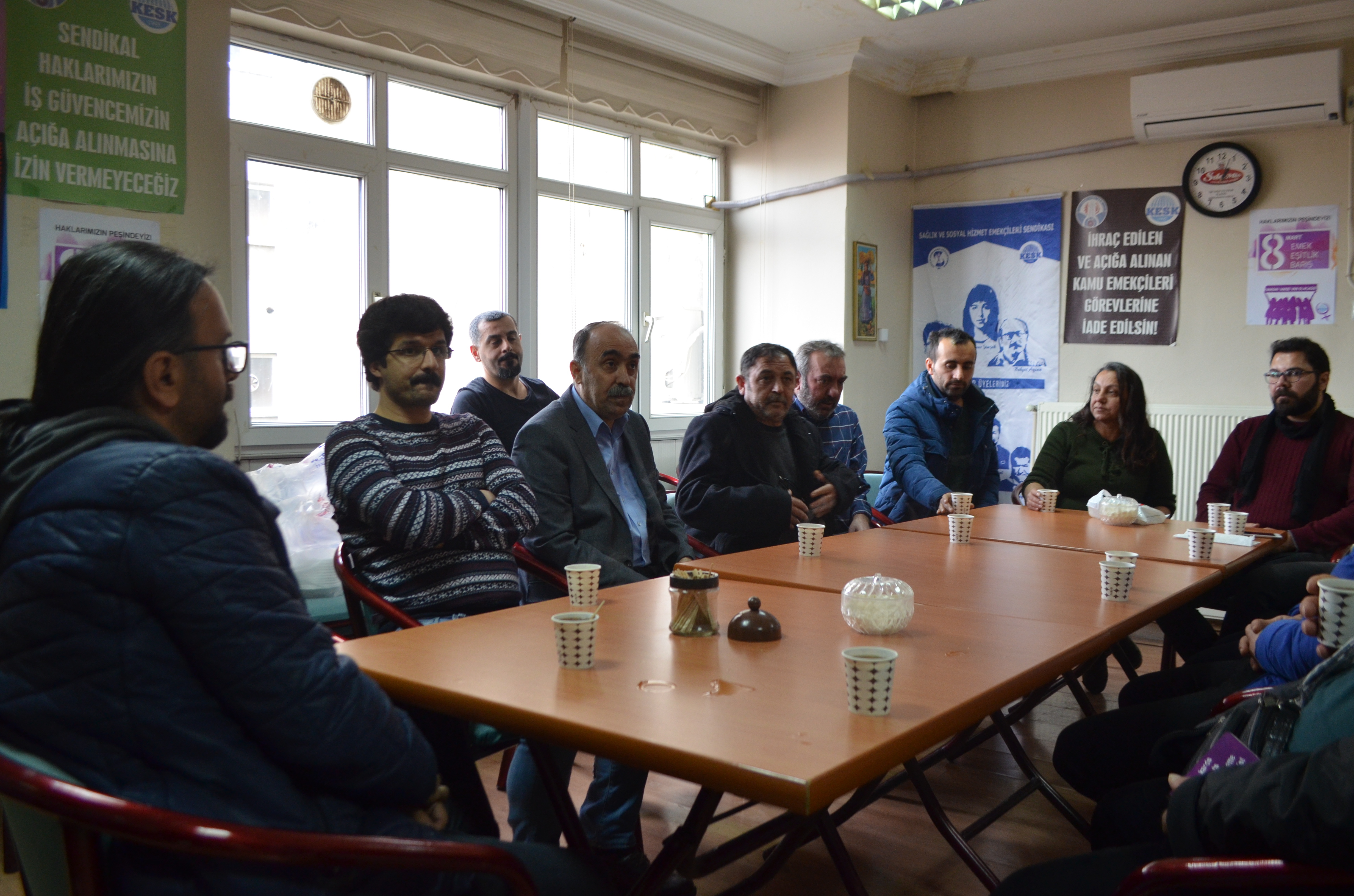 Korkmaz, “Yüz binlerce kamu emekçisi işinden edildi. Biz kamu emekçilerinin iş güvencesine yönelik saldırı olarak değerlendirdik. Onun kaynağı da OHAL’dir. Biz tek tek ihraç edilenler geri dönsün diye değil bunun kaynağının ortadan kaldırılması için, OHAL’in kalkması için oturma eylemi yapıyoruz” diye konuştu.