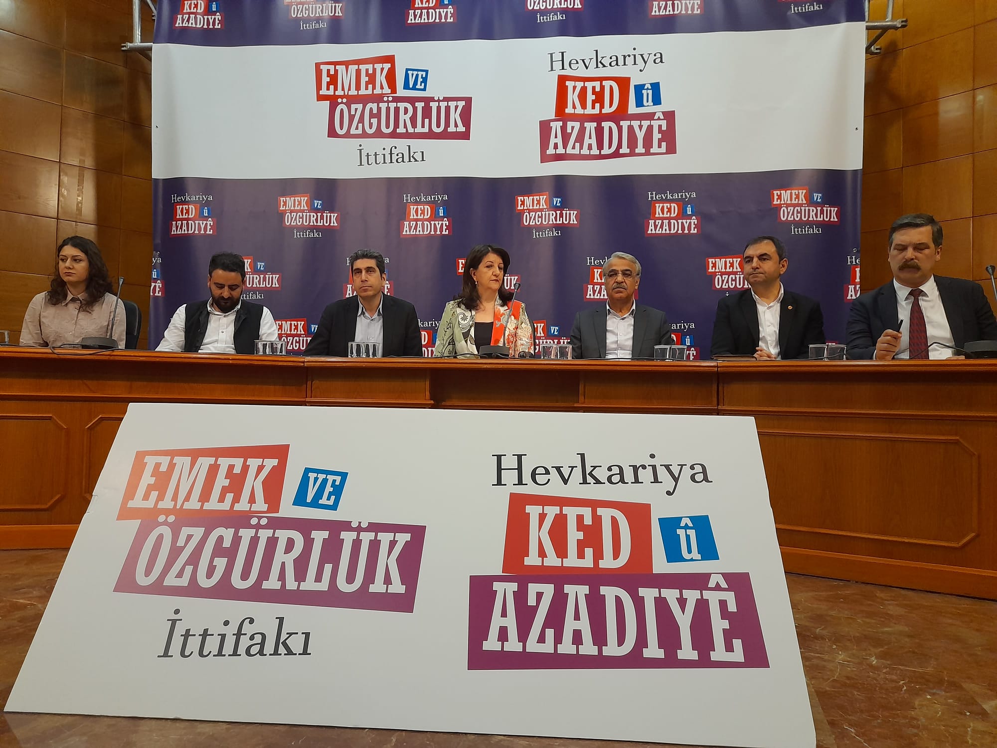 Emek ve Özgürlük İttifakı, Amed merkezli gözaltı ve tutuklamalara ilişkin yazılı açıklama yaptı. “Gün susma günü değil, faşizme karşı birleşme ve hep birlikte ses çıkarma günüdür” başlıklı açıklamada, 25 Nisan’da 21 kentte yapılan “siyasi kumpas operasyonlarıyla” siyasetçiler, özgür basın çalışanları, avukatlar ve sanatçıların gözaltına alındığı hatırlatıldı.