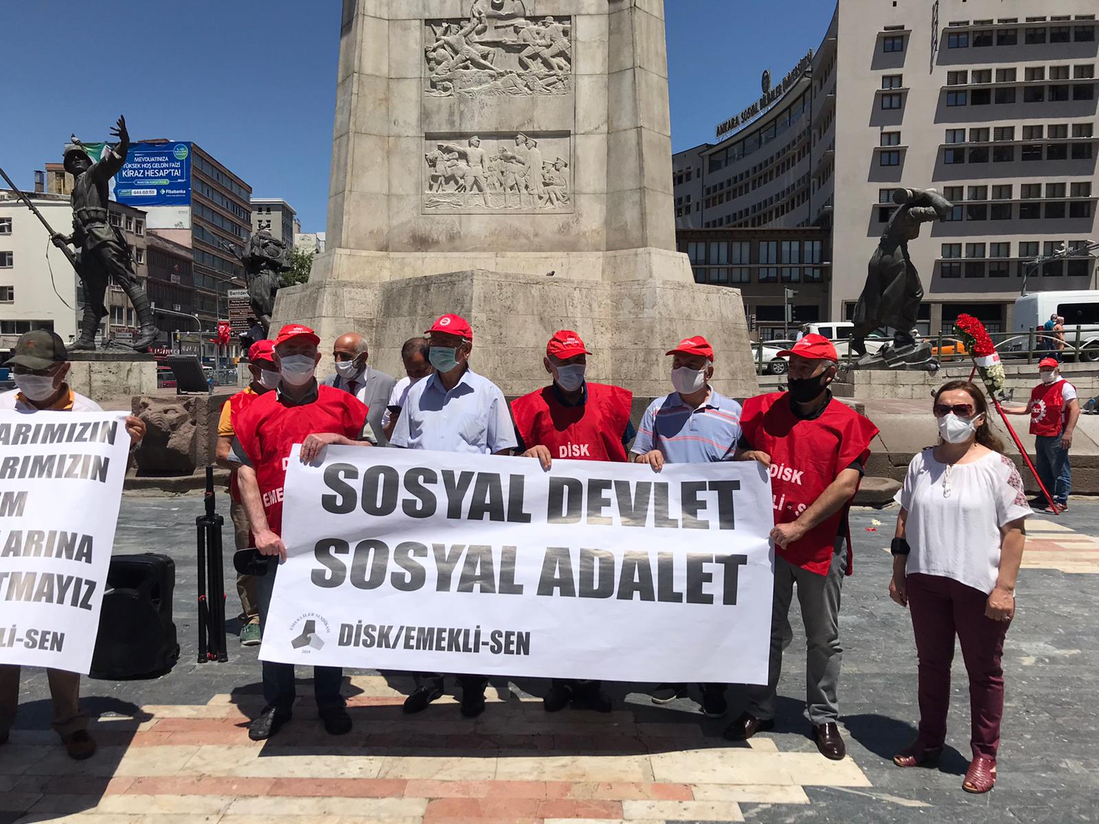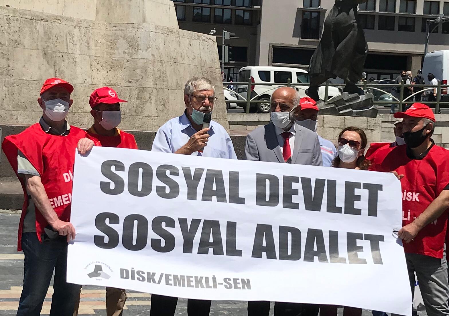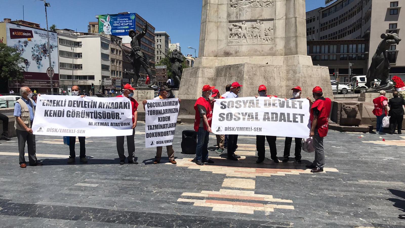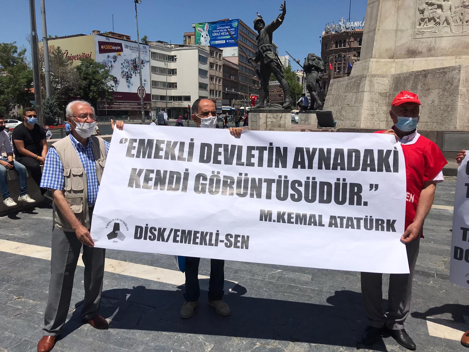 PİRHA – Emekliler Haftası nedeniyle DİSK/Emekli Sen, Ulus Heykel’de yaptığı basın açıklamasında, emeklilerin yoksuluk ve açlık sınırının altında yaşadıklarına dikkat çekildi.