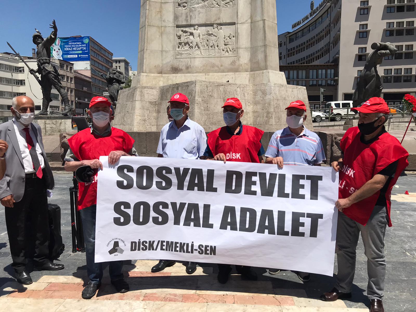 Emekliler Haftası nedeniyle DİSK/Emekli Sen, Ulus Heykel’de basın açıklaması yaptı. Açıklamayı, MYK adına Emekli Sen Genel Başkanı Cengiz Yavuz okudu.