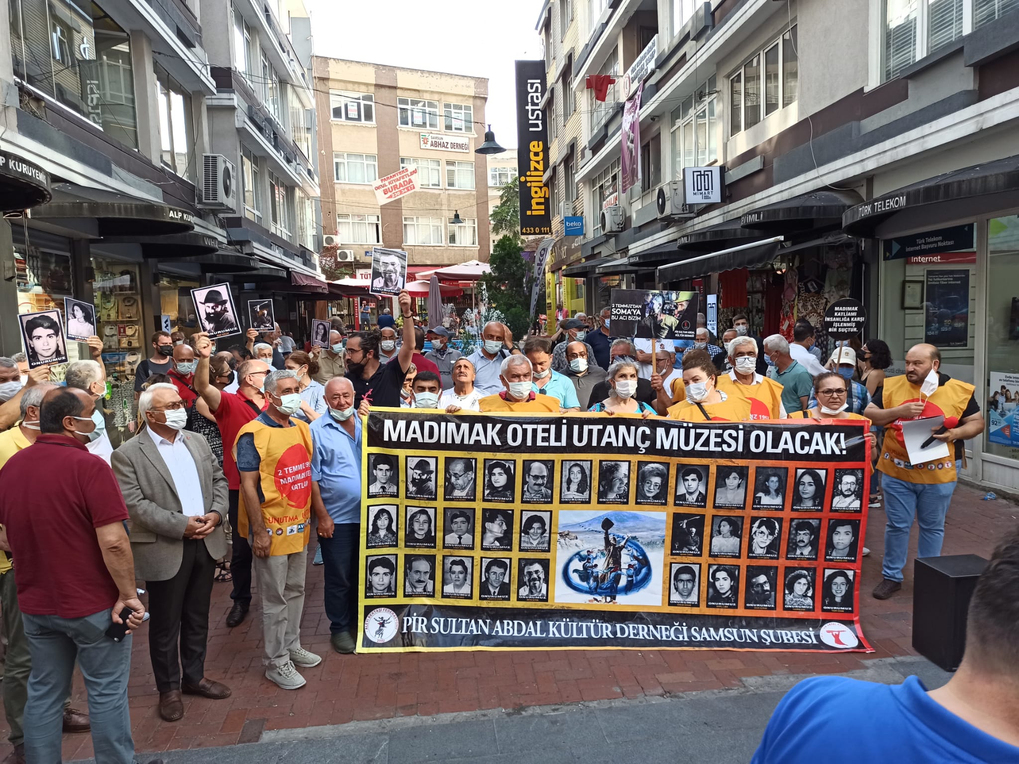“Madımak Katliamının zamanaşımına uğratılmasına ”hayırlı olsun” diyenlerin iktidarında; Roboski katliamına, Ankara gar katliamından, Suruç katliamına, Diyarbakır’dan Antep’e kadar sayısını dahi unuttuğumuz katliamları yaşadık, gördük. Nefret ve kin, ötekileştir içi ve inkârcı söylemleri yaşamın her alanında sürdürmektedir. Bu gün çok daha net görüyoruz ki o gün Madımak otelini kuşatan zihniyet, mafyalaşarak ülkeyi kuşatmış durumdadır. Bu nefret ve ötekileştir içi söylemlerin bir sonucu olarak HDP İzmir il örgütüne yapılan saldırı sonucuna Deniz Poyraz canımız katledildi. Ama biz Aleviler, biz demokratlar, biz laikler, biz devrimciler, biz yurtseverler asla karanlığa teslim olmayacağız. Şah Kalender’den Koray Kaya’ya Pir Sultan Abdal’dan Hasret Gültekin’e uzanan bu onurlu tarih bizimdir. Ve asla onların yolunu terk etmeyeceğiz. Sivas’ın ışığını söndürmeyeceğiz. Sivas Katliamında yitirdiğimiz canlarımızı, saygıyla ve Özlemle anıyor, Pirimiz Pir Sultan’ın “Bozuk Düzende Sağlam Çark Olmaz” şiarıyla her yıl olduğu gibi yine alanlardan haykırıyoruz.