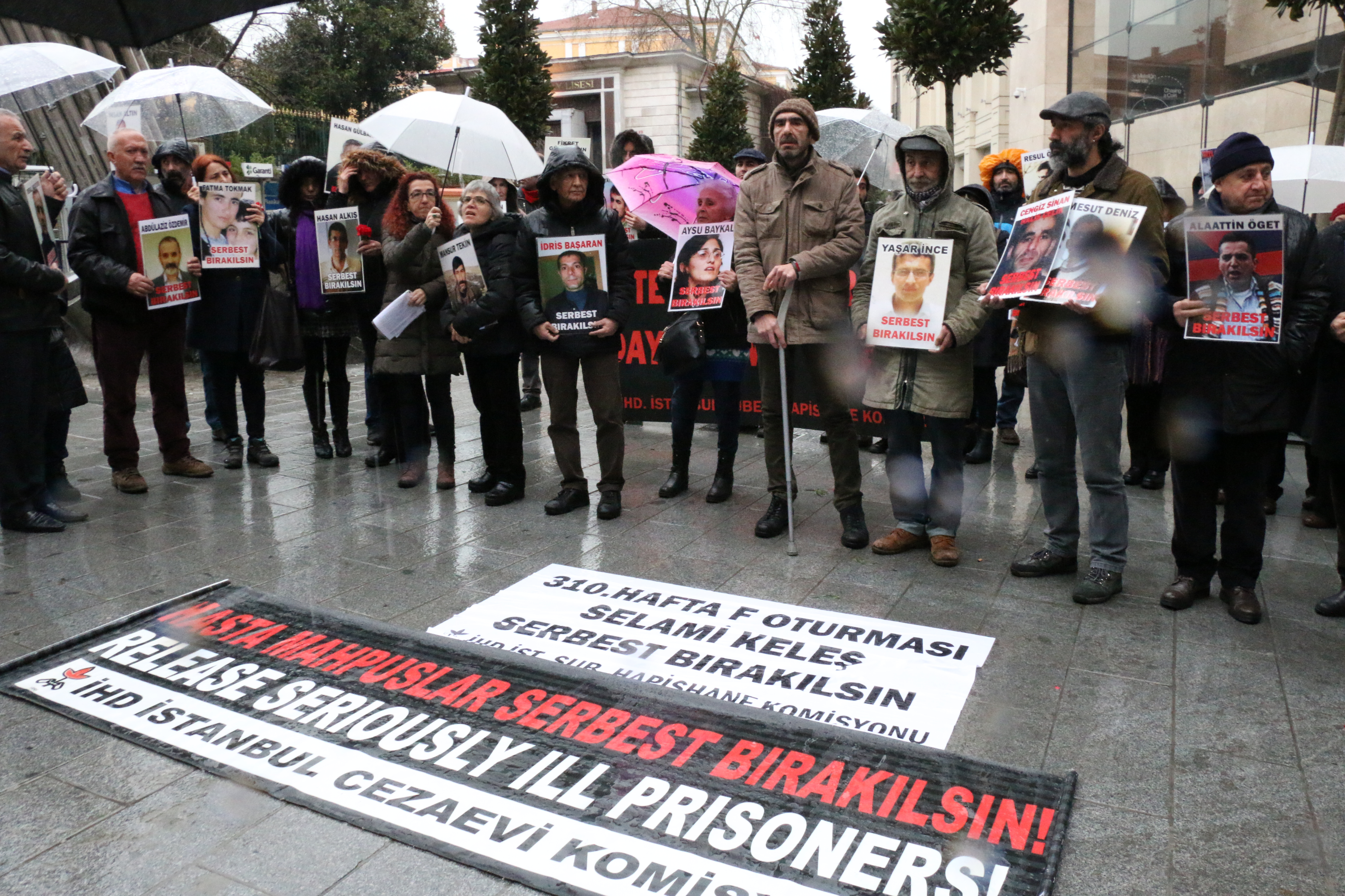 Hapishanelerdeki hak ihlallerine, hasta tutukluların sağlık durumuna dikkat çekmek amacıyla 310. kez Galatasaray Meydanı’nda biraraya gelen İnsan Hakları Derneği (İHD) İstanbul Şubesi Hapishane Komisyonu üyeleri, tedavisi yapılmayan epilepsi hastası Selami Keleş’in serbest bırakılmasını talep etti. Oturumda, hapishanelerde başlatılan askeri düzende ayakta sayım uygulaması da eleştirilerek, “Politik mahpuslar tek tip gibi 12 Eylül kalıntısı askeri düzende ayakta sayımı kabul etmiyorlar. Bunun karşısında ise yaşamlarını tehdit eder boyutta işkence görüyorlar” denildi.