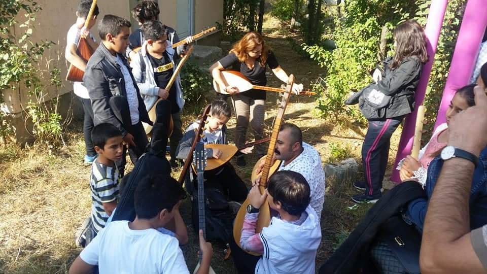 Erdal Erzincan Bağlama Kursu’nun düzenlediği “Gezici Bağlama Atölyesi” Dersim’de öğrencilerle buluştu. Üç yıllık bir eğitim programını içeren Gezici Bağlama Atölyesi’ndeki dersler Erdal Erzincan Müzik Kursu’nda uygulanan sisteme göre gerçekleşecek. Erzurum, Erzincan ve Dersim merkezli olarak düşünülen bu çalışma şehir merkezlerinde ve önceden belirlenmiş uygun çalışma ortamı olan köylerde yapılacak. Ücretsiz olarak gerçekleşecek atölye son ayağı Dersim’in Pülümür ilçesine bağlı Dağyolu Köyü’nde bir okulda gerçekleşti.