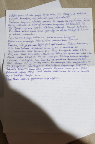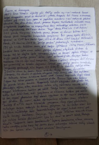 Eren Erdem’in açlık grevine başladığını duyurduğu mektup ise şöyle: