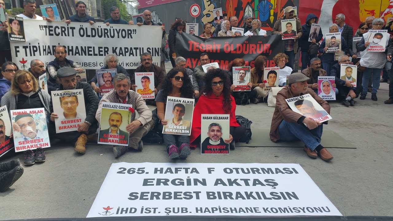 İnsan Hakları Derneği (İHD) Hapishane Komisyonu hasta tutsakların durumuna dikkat çekmek için her hafta Galatasaray Meydanı’nda düzenlediği “F oturumu”nun 265.’sini gerçekleştirdi. Bu hafta Menemen R Tipi Hapishanesi’nde bulunan Ergin Aktaş’ın durumu aktarıldı.