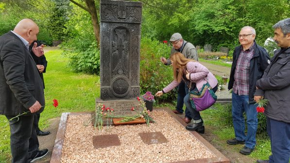 İkinci anma ise Ren Nehri kenarında 1915 soykırımında hayatını kaybeden Ermeniler anısına dikilen soykırım anıtının dikildiği yerde yapıldı. Soykırım anıtı Köln Belediyesi tarafından izinsiz dikildiği gerekçesiyle kaldırılmıştı. Stefan Kaiser ile Max Scholz adlı sanatçılar tarafından tasarlanan 1,5 metre uzunluğundaki anıtın üzerinde Ermenice, Türkçe, Almanca ve İngilizce “Bu acı hepimizin” yazıyordu.