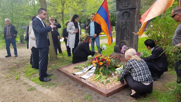 Anma töreni Papaz Vahridisch Baghdasaryan’ın Ermenice okuduğu dualar ile başladı. Papaz Baghdasaryan’ın soykırımı anlatan konuşmasının ardından Ermeni Cemaati Başkanı Minu Nikpay bir konuşma yaptı. Nikpay, Osmanlı döneminde yapılan Ermeni soykırımının ardından, kalan Ermenilerin dünyanın diğer ülkelerine hangi koşullarda yolculuk yaptıklarına değindi. Nikpay ayrıca Ren Nehri kenarına dikilen “soykırım anıtının” kaldırılmasını kınadı.