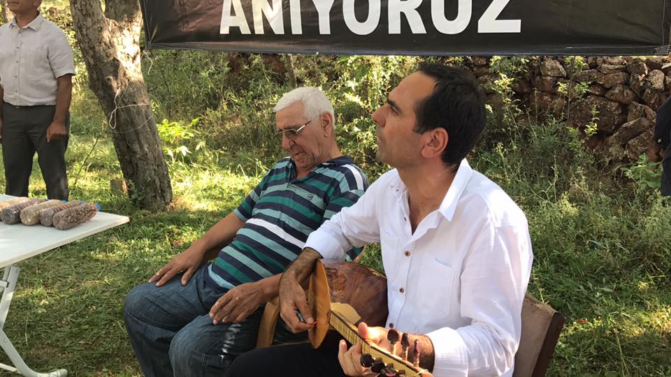 Anma toplantısında,bugüne kadar sadece kulaktan kulağa fısıldanan şu ağıt da ilk kez Veli Çetinkaya tarafından topluluk karşısında saz eşliğinde okundu:
