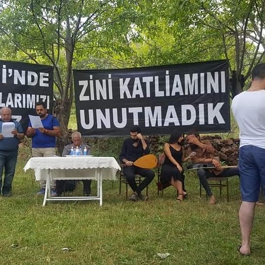 ‘Zini Katliamını Unutmadık’, ‘Zini Gediği’nde katledilen canlarımızı anıyoruz’ pankartları asıldı. Zini Katliamı’nın 80. yılında Erzincan’da yapılan anma törenine HDP İstanbul Milletvekili Zeynel Özen ve Fransa Alevi Birlikleri Federasyonu Başkanı Erdal Kılıçkaya’nın yanı sıra çok sayıda kişi katıldı.