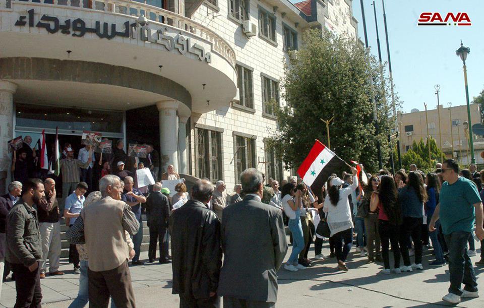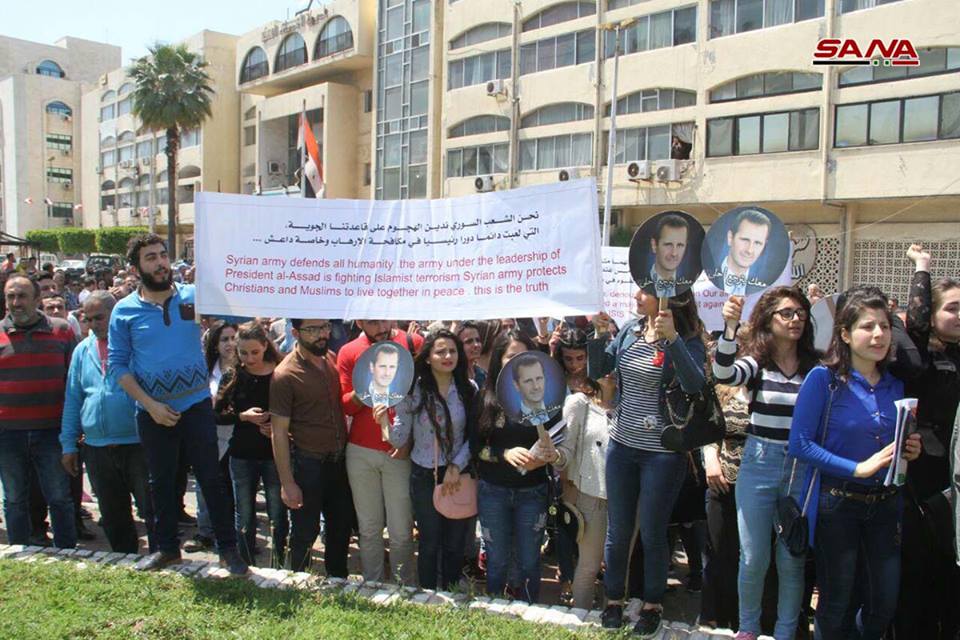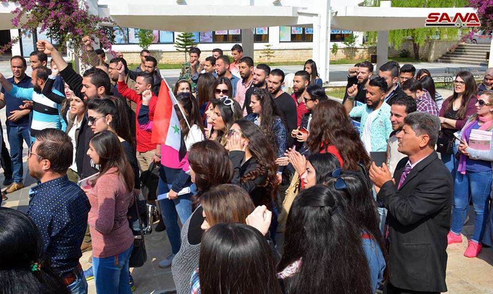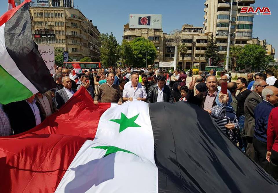 Tartus’ta, Dera’da, Halep’te, Lazkiye’de, Süveyda’da, halk, ABD, Fransa ve İngiltere’nin bugün erken saatlerde Şam ve Homs’ta sivil ve askeri kurumlara düzenledikleri saldırıyı kınadı.