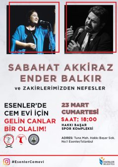 Sanatçılar Sabahat Akkiraz ile Ender Balkır’ın türkülerini seslendireceği konser biletleri 5 TL ve biletler cemevi, dernek ve dergahlardan temin edilebilecek.