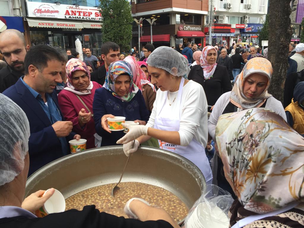 Hüseyin Acaray, Muharrem ayı ve Aşure lokması ile ilgili yaptığı konuşmanın ardından pişirilen Aşureye lokma duası verdi. Meydanda bulunan canlara lokmalar dağıtıldı.