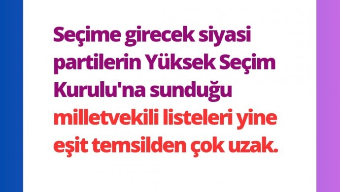 Eşitlik İçin Kadın Platformu (EŞİK), seçime girecek siyasi partilerin aday listelerine ilişkin yazılı açıklama yaptı. Seçime girecek siyasi partilerin Yüksek Seçim Kurulu’na (YSK) sunduğu milletvekili listelerinin yine eşit temsilden çok uzak olduğu vurgulanan açıklamada, “Kadınlar siyasete girmek istemiyor’ iddiasını çürüten çok sayıda kadın aday adayı olmasına rağmen, listelerde çok az sayıda kadına yer verildi” denildi.