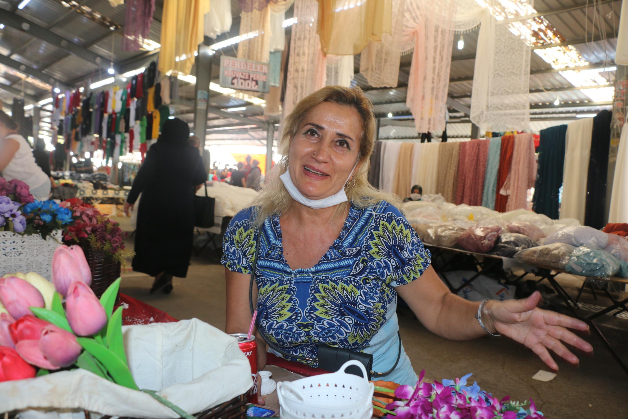 Mersin Mezitli’de kurulan Sosyete Pazarı’nda annesinden öğrendiği el işileri yapıp satan kadın esnaf, maliyetlerin arttığını, gelirlerinin düştüğünü, günlük açıklanan pandemi rakamlarının da gerçeği yansıtmadığını söyledi.
