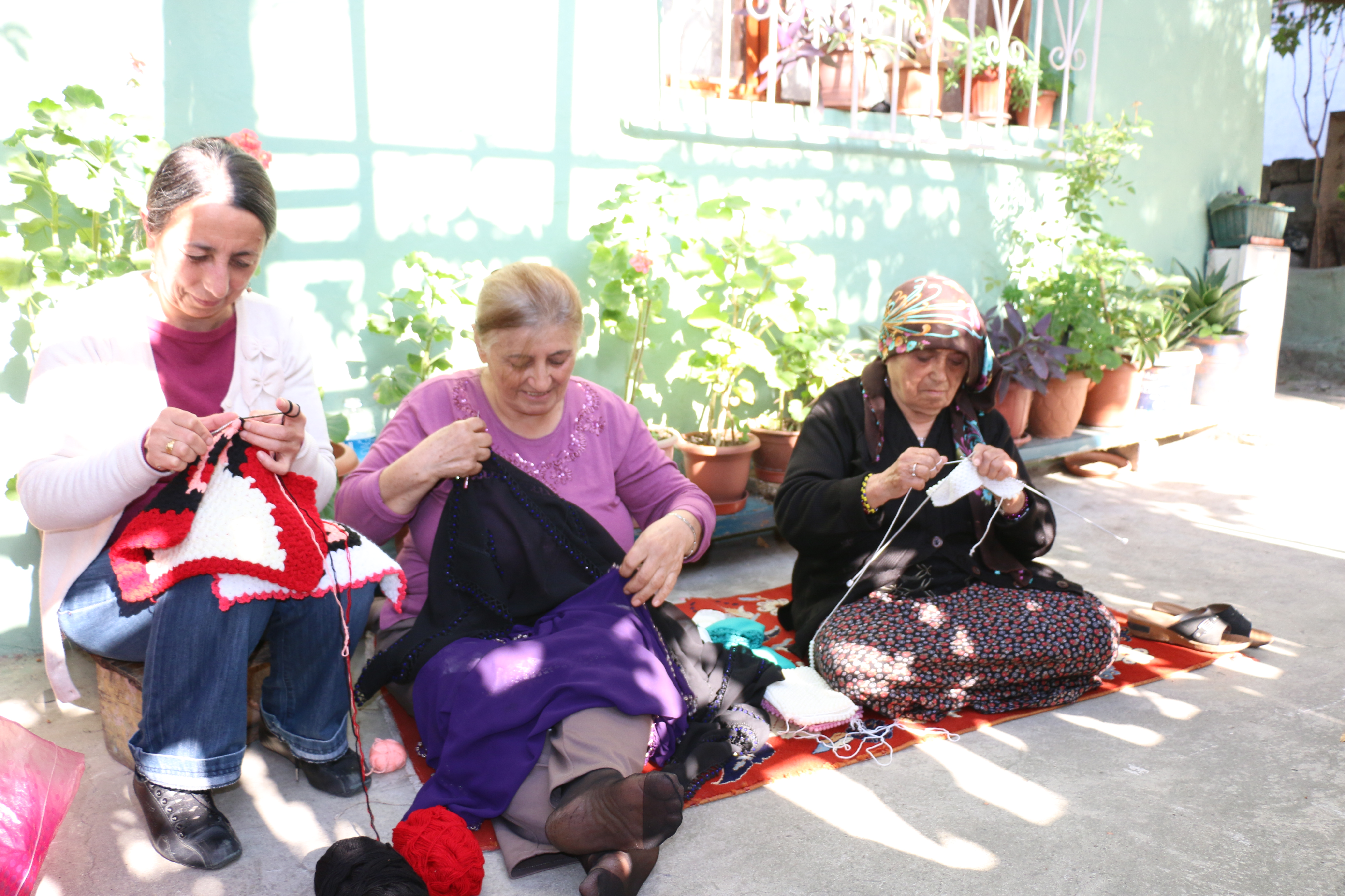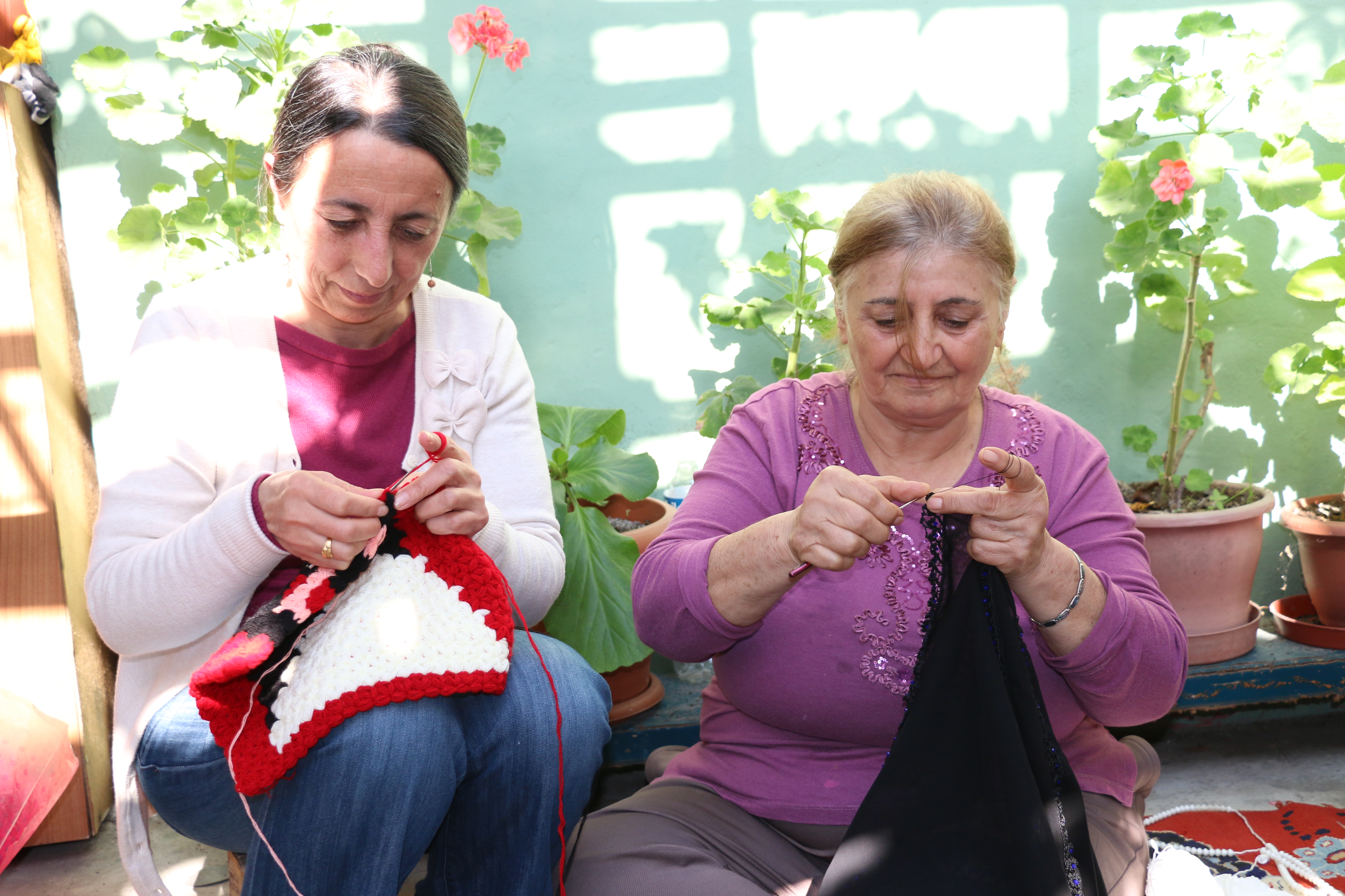 Tülbent ve düğün mendilleri yapan Erder, “Ev işlerini yaptıktan sonra oturacağıma ve boş duracağıma tülbent ve düğün mendili yaparak eve katkı sunuyorum. Hem el işi hem de ev işlerini yaparak ev işçiliği yapıyoruz. Ancak hiçbir sosyal hakkımız yok. Eskiden çocuklarım küçüktü onlara bakmak zorunda kaldığım için çalışamadım. Bundan dolayı bugün herhangi bir sosyal güvencem yok. Emekli olmuş olsaydım belki bunları yapmaya ihtiyaç duymayabilirdim” şeklinde konuşuyor.