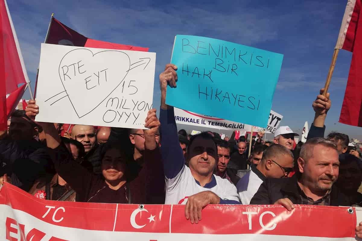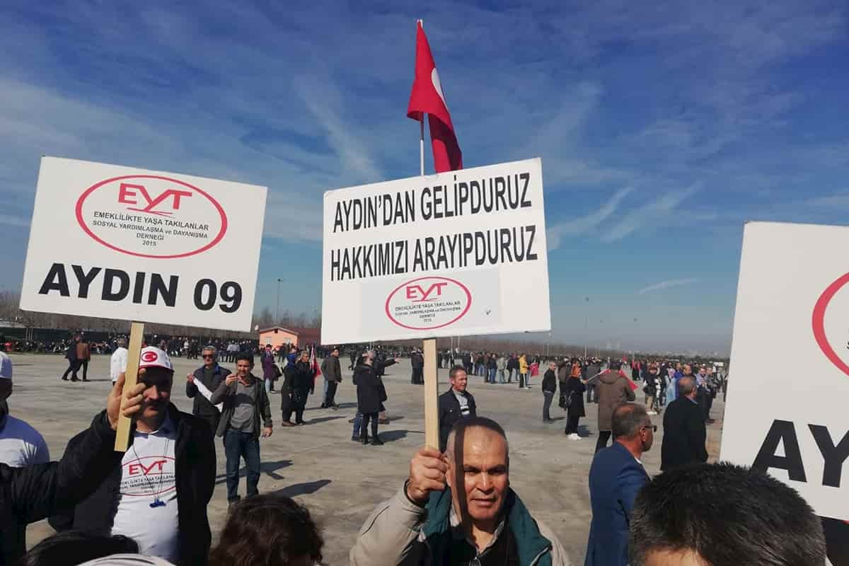 Emeklilikte yaşa takılmak Türkiye’de 3 milyonu aşkın kişiyi ilgilendiren kritik bir durum. EYT olarak kısaltılan emeklilikte yaşa takılma durumunda olan binlerce kişi örgütlenerek hükümetten bu durumun çözülmesini istiyor.