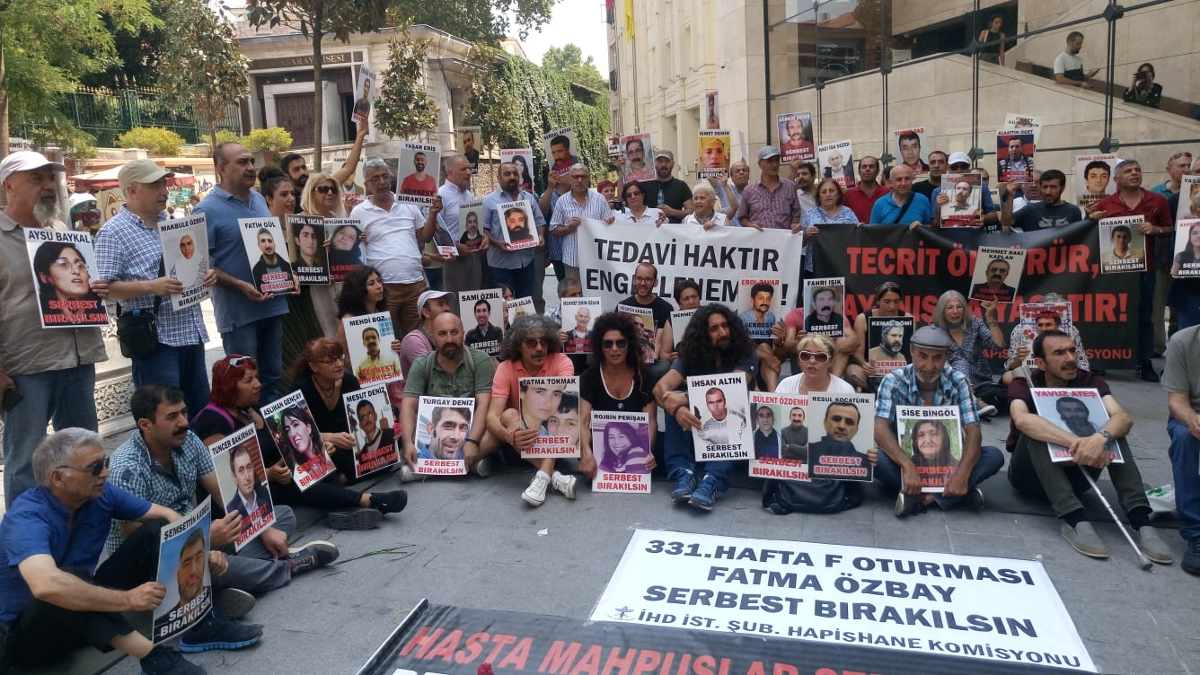 İnsan Hakları Derneği (İHD) İstanbul Şubesi Hapishane Komisyonu üyeleri, hasta tutukluların durumuna dikkat çekmek amacıyla her hafta düzenledikleri “F Oturumu”nun 331’incisini Galatasaray Meydanı’nda gerçekleştirdi. Bu haftaki eylemde hasta tutuklu Fatma Özbay’ın durumuna dikkat çekildi.