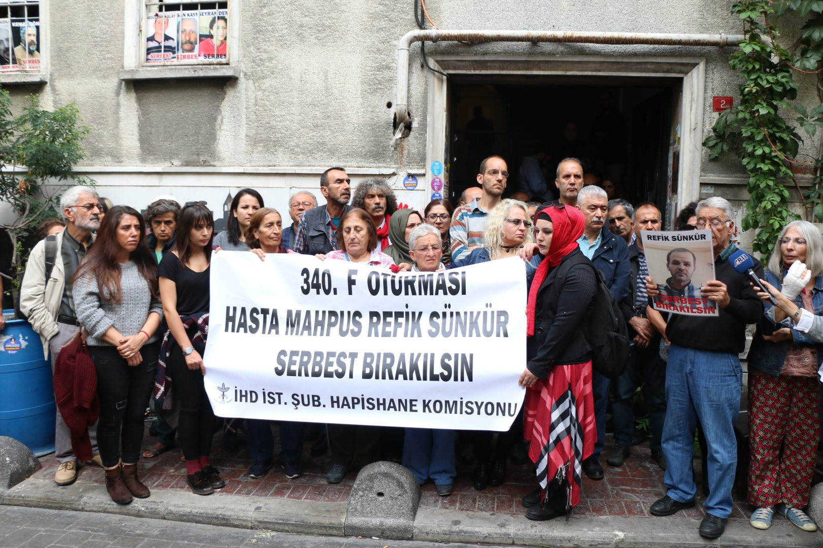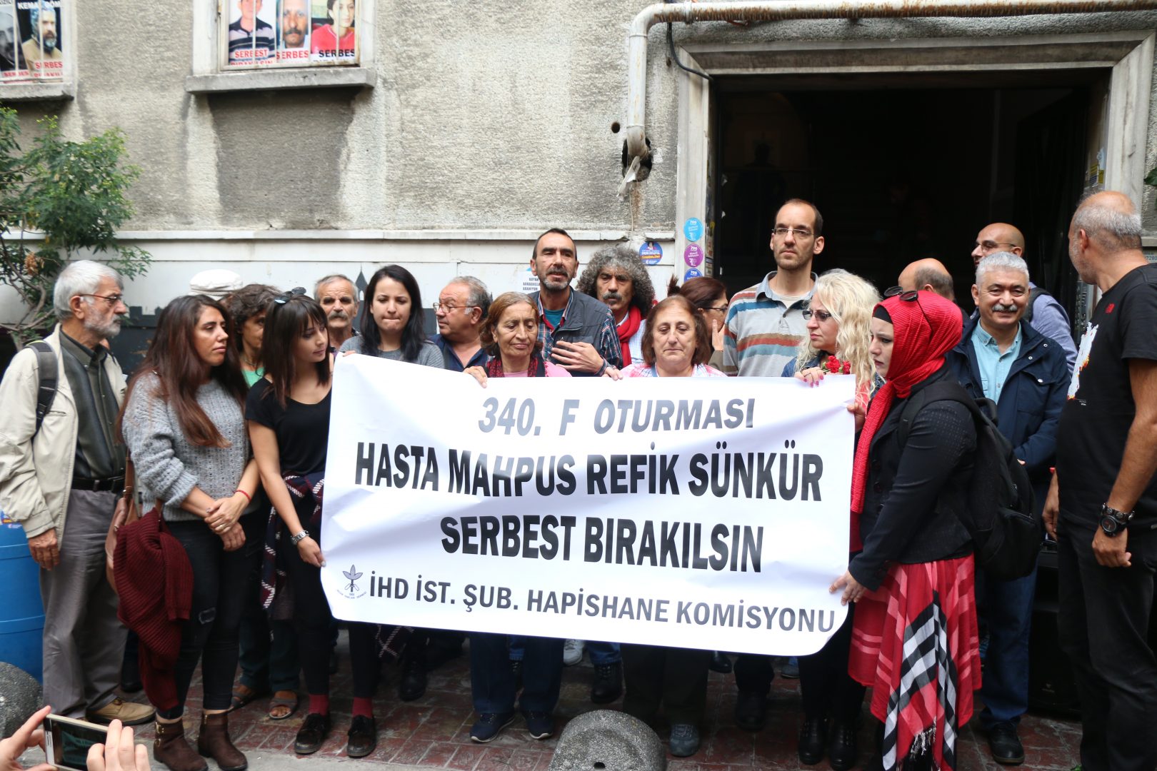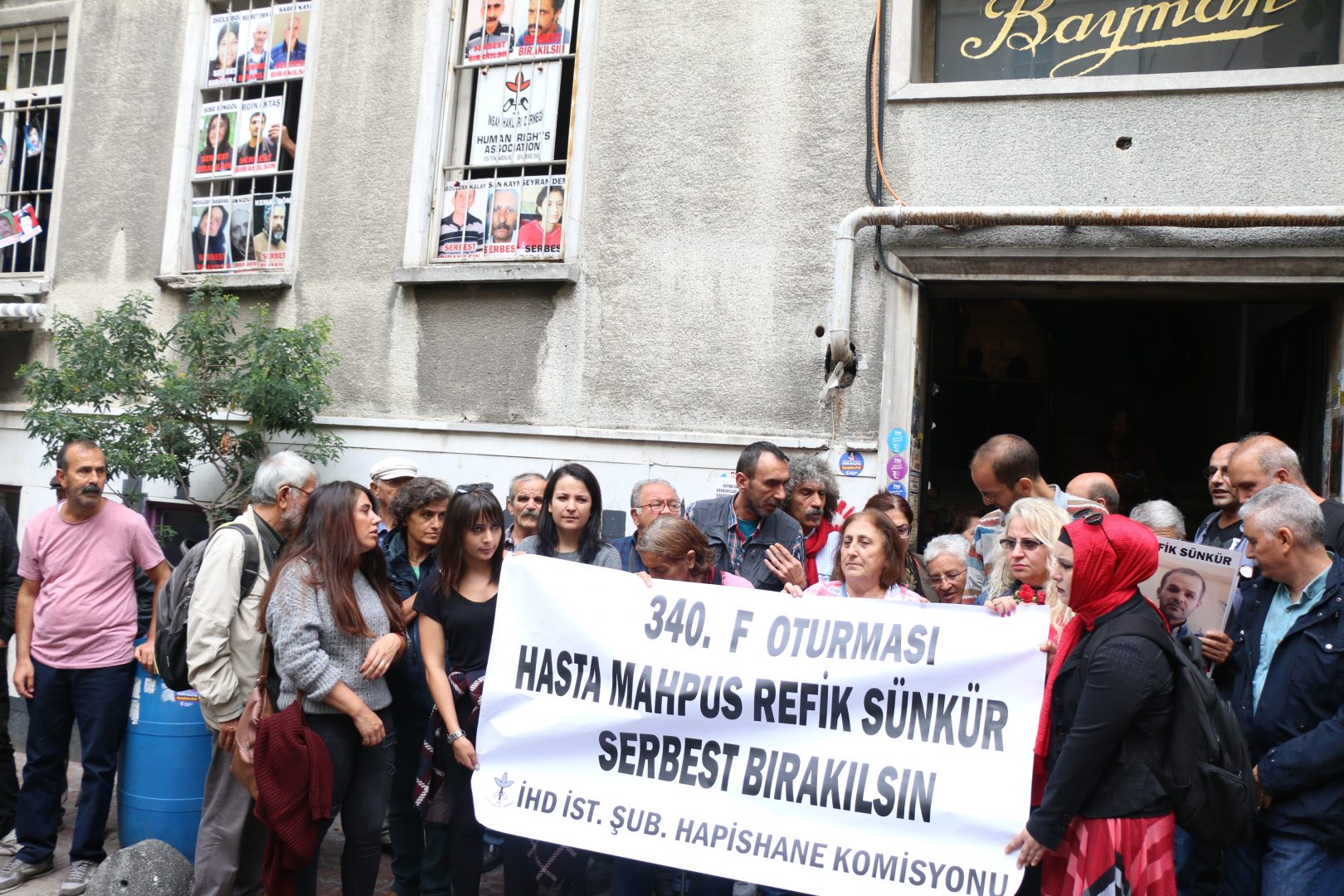 Cumartesi Anneleri eyleminin 700. haftasında gelen baskılarla birlikte hasta tutukluların sesini duyurmaya çalışan  F Oturması da engellendi. Galatasaray Meydanı’nda her hafta yaptıkları açıklamanın 340. haftasını da İHD İstanbul Şubesi önünde gerçekleştirdi. Basın açıklamasını Mehmet Acettin okudu. 340. F oturmasında Bolu Hapishanesi’nde tutulan hasta tutuklu Refik Sünkür’in durumununa dikkat çekildi.